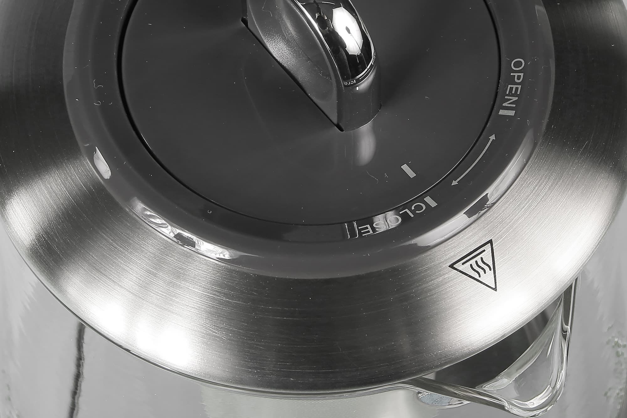 Чайник выглядит очень, мы бы сказали, гармонично. Форма и цвет подставки, диаметр чайника, форма колбы и ручки, высота — все это вместе складывается в очень внешне привлекательную конструкцию. Сочетание нержавеющей стали со стеклянной колбой — с внешней точки зрения штука вообще практически беспроигрышная, но здесь дизайнер сделал невозможное, усилив и без того большой «вау-эффект».