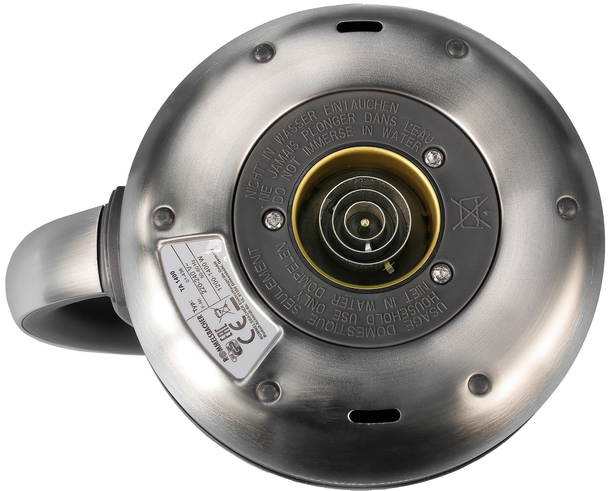 Вскрыв коробку, внутри мы обнаружили чайник с установленным в него ситечком для заварки чая, базу со смотанным в нее сетевым шнуром, немецко-английскую инструкцию на мелованной бумаге и отдельно русскоязычную — на обычной матовой. Впрочем, учитывая то, что обе они черно-белые, мы бы не сказали, что глянец придал англо-немецкой инструкции больше шика ;)