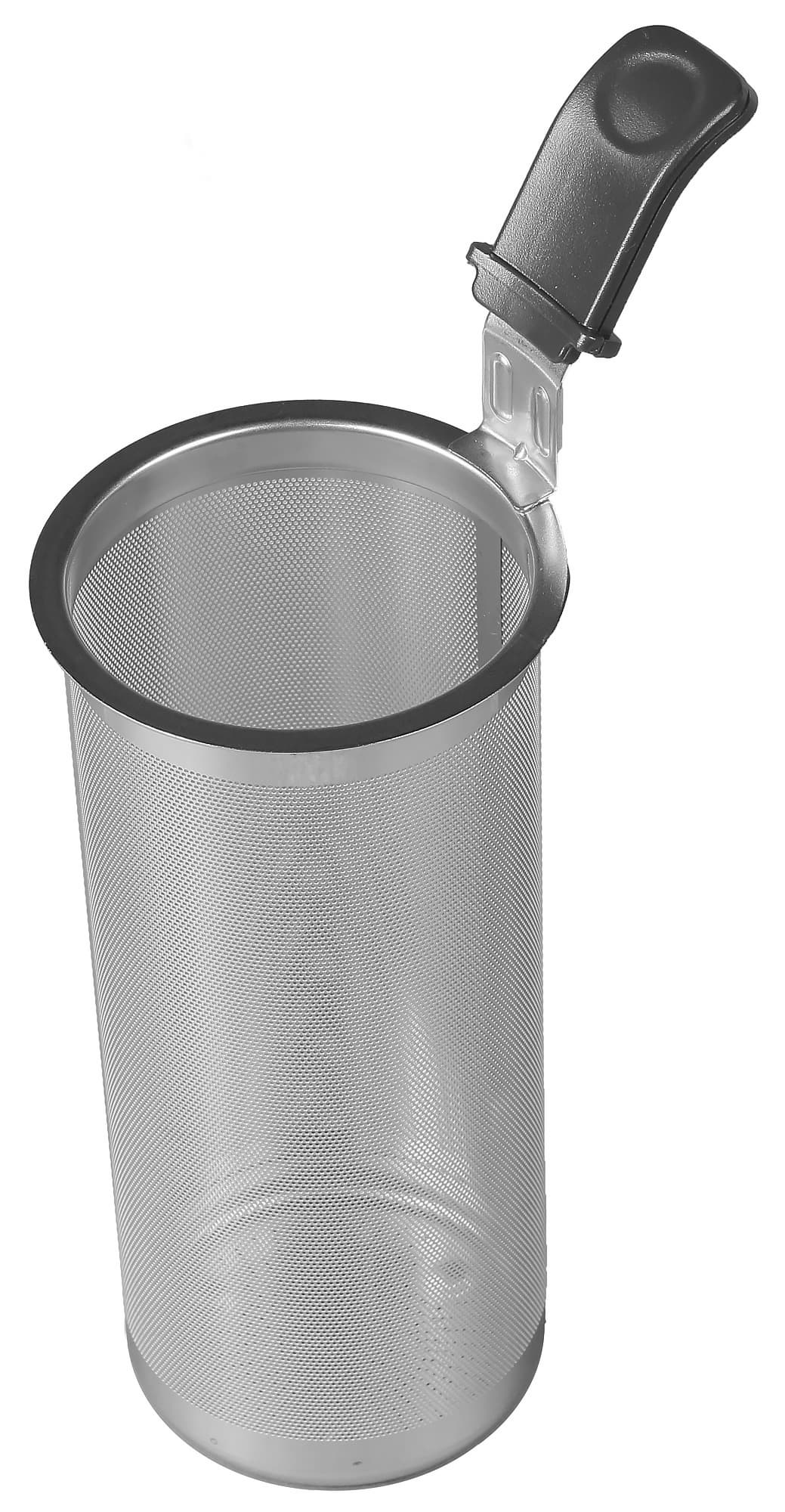 Заварочное ситечко сделано из нержавейки, только ручка пластиковая (чтобы не обжечься). Смять его, конечно, можно, но совсем уж хлипкой конструкция не является — падение на пол с высоты около 1,5 метров однажды выдержала. По бокам отверстия совсем мелкие, в дне — чуть побольше.
