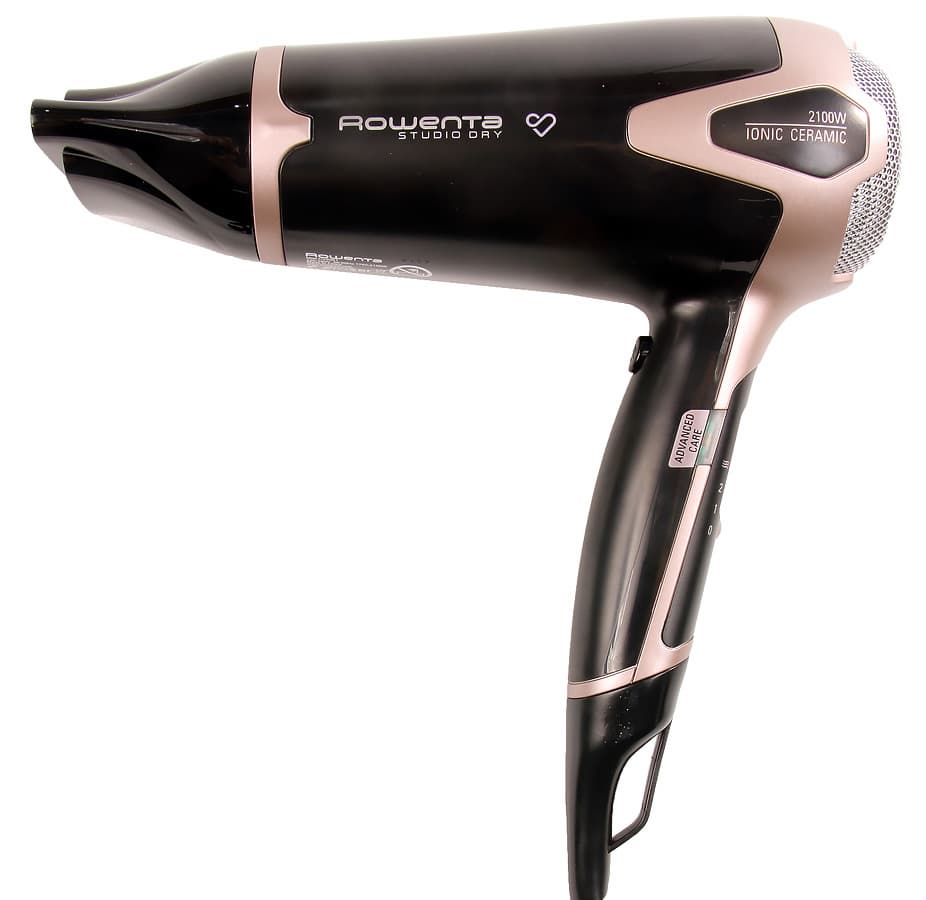 Фен Rowenta имеет благородную родословную и обучен регулировке силы воздушного потока, выбору температуры и имеет в вассалах оригинальную насадку-концентратор. Уже понятно, откуда в названии Premium Care (будь вы хоть феном, хоть кормом для кошек — говорите о заботе) и Studio Dry 2100 W (мощность фена сравнима с профессиональными моделями). Ionic обозначает функцию ионизации по умолчанию, а Ceramic — особое керамическое покрытие рабочей поверхности.