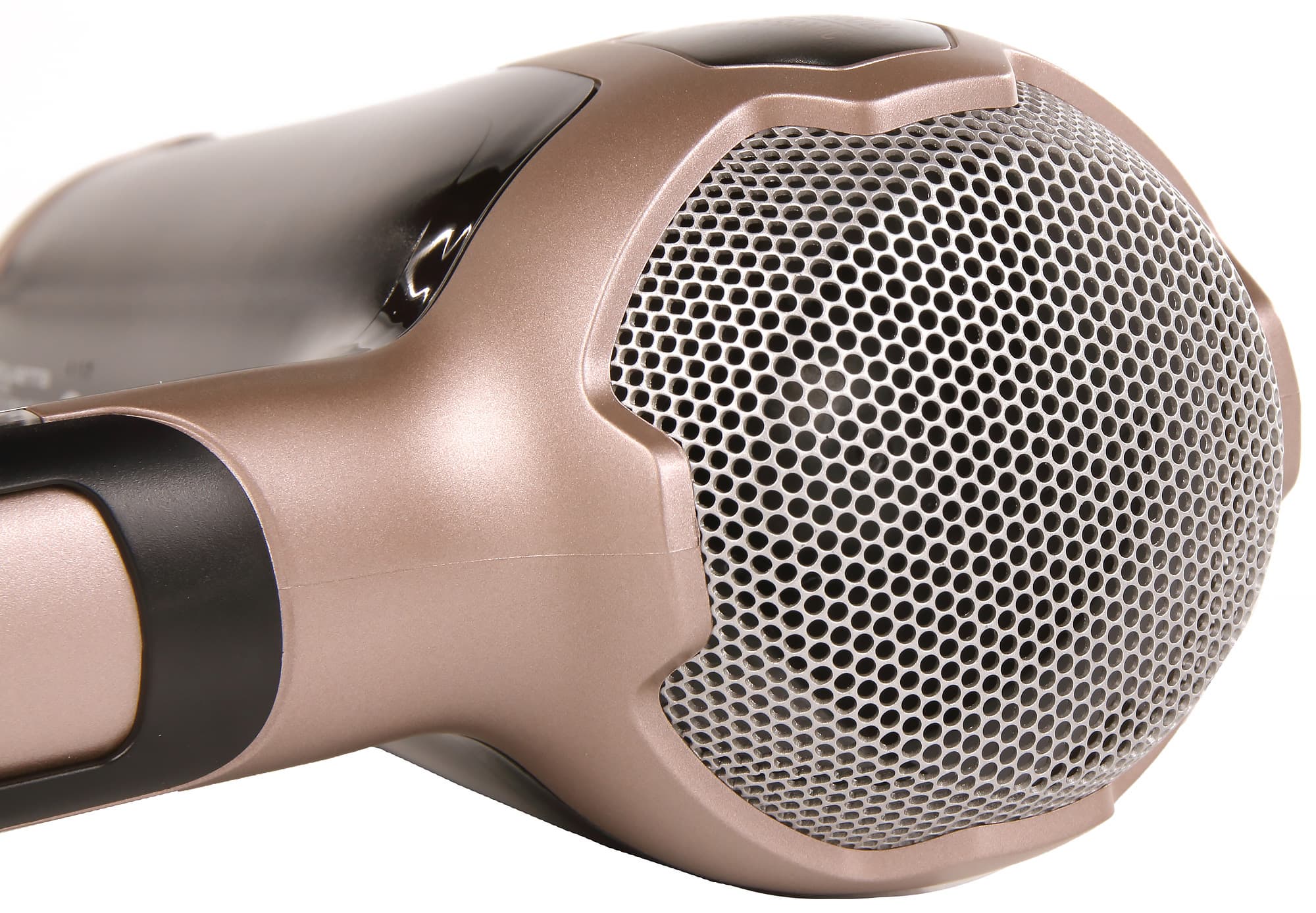 За розовой пластиковой решеткой в сопле можно разглядеть три перекрещенные пластины, тонкую белую трубку и металлическую фигурную проволоку. Где-то там скрывается волшебное покрытие с кератином и аргановым маслом, хотя по внешнему виду прибора и тактильным ощущениям определить это невозможно.