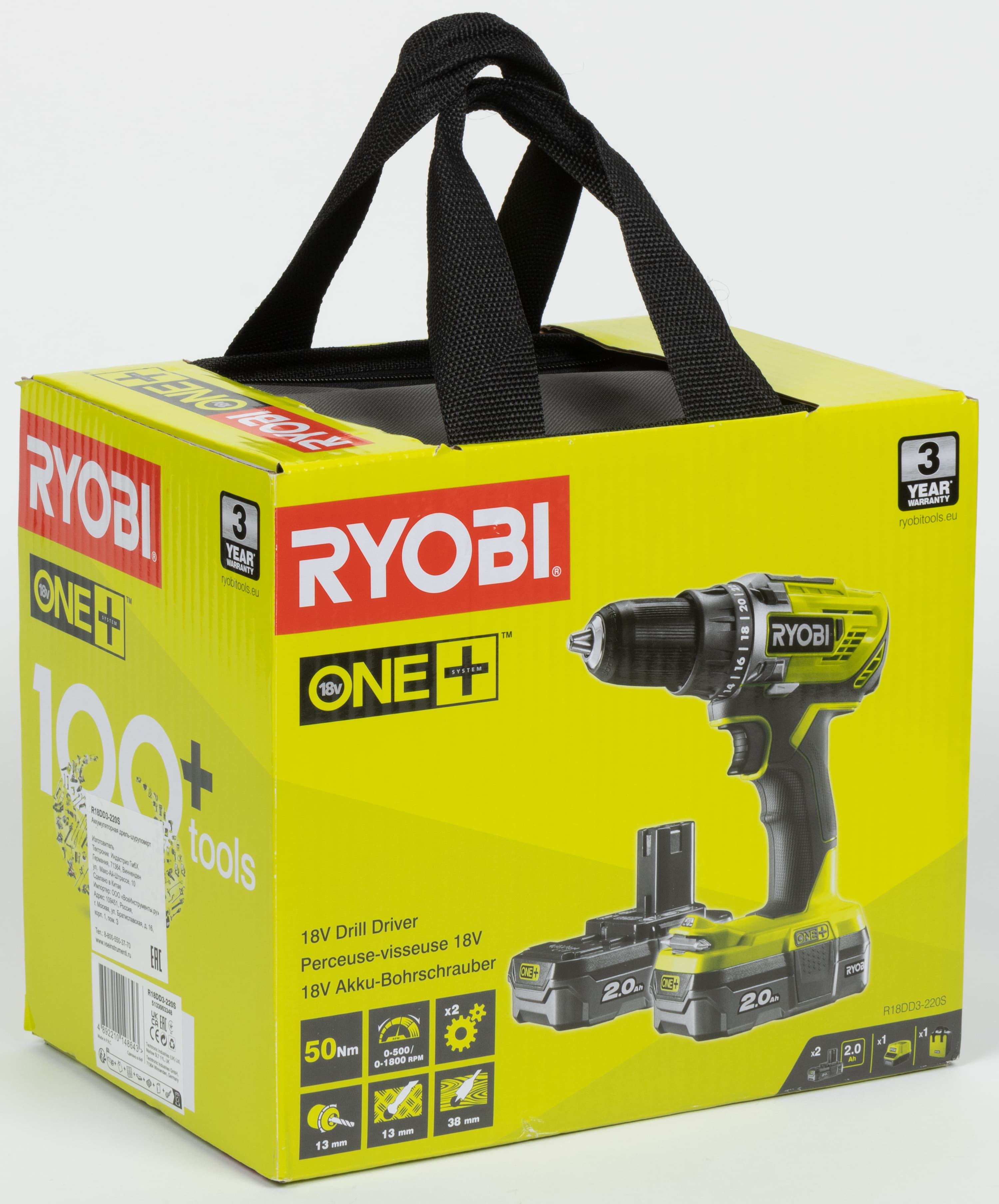 | Ryobi R18DD3-220S | 18 | 50 | 9,5 | 5,3 |