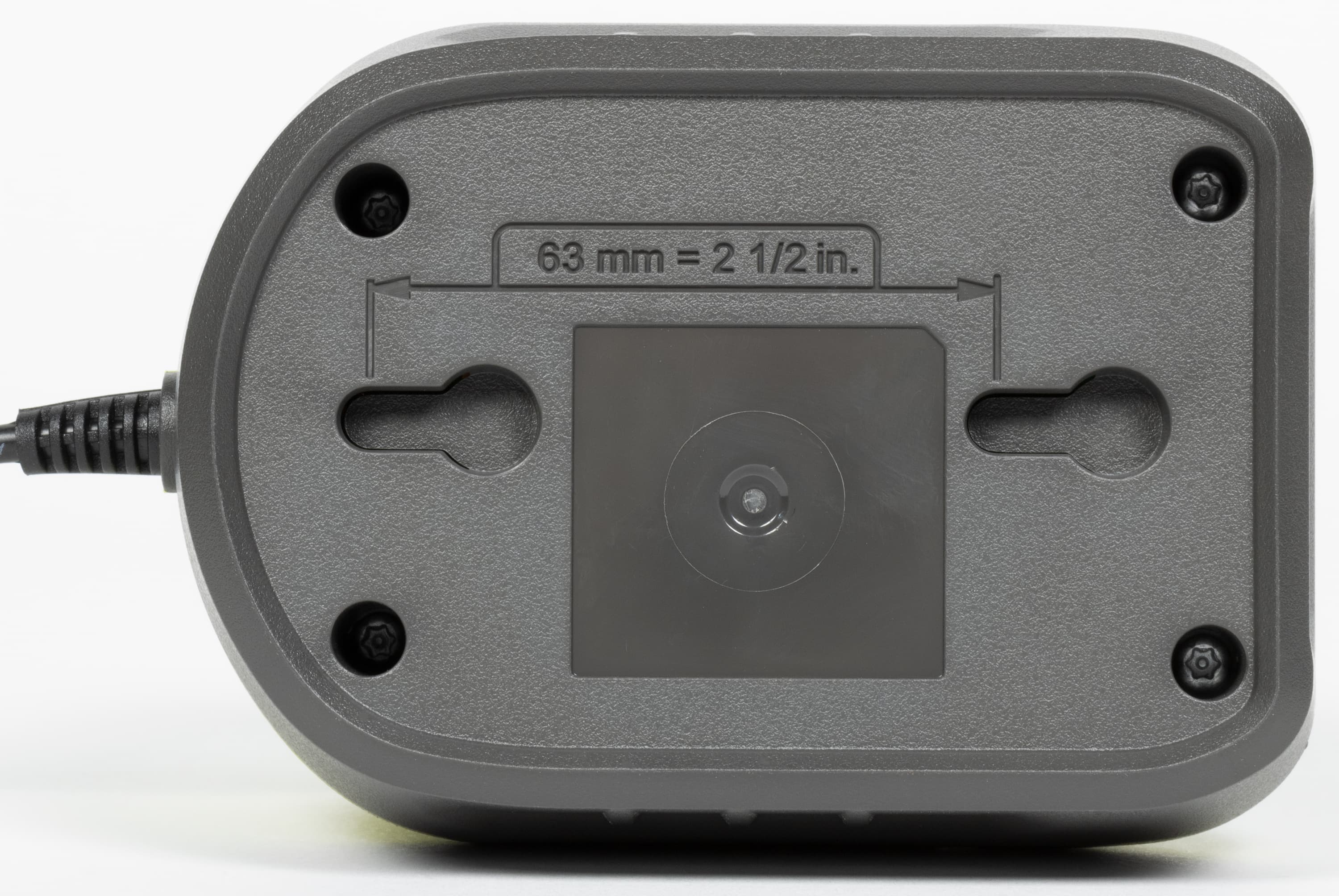 Донышко зарядной станции имеет прорези для крепления к стене. Даже с указанием размеров между отверстиями. Кстати, великолепное решение — указывать посадочные размеры непосредственно на задних стенках устройств. Некоторые, самые дисциплинированные производители, иногда прилагают бумажные шаблоны для высверливания крепежных отверстий. А тут и шаблончиков не надо, ведь они наверняка потеряются.