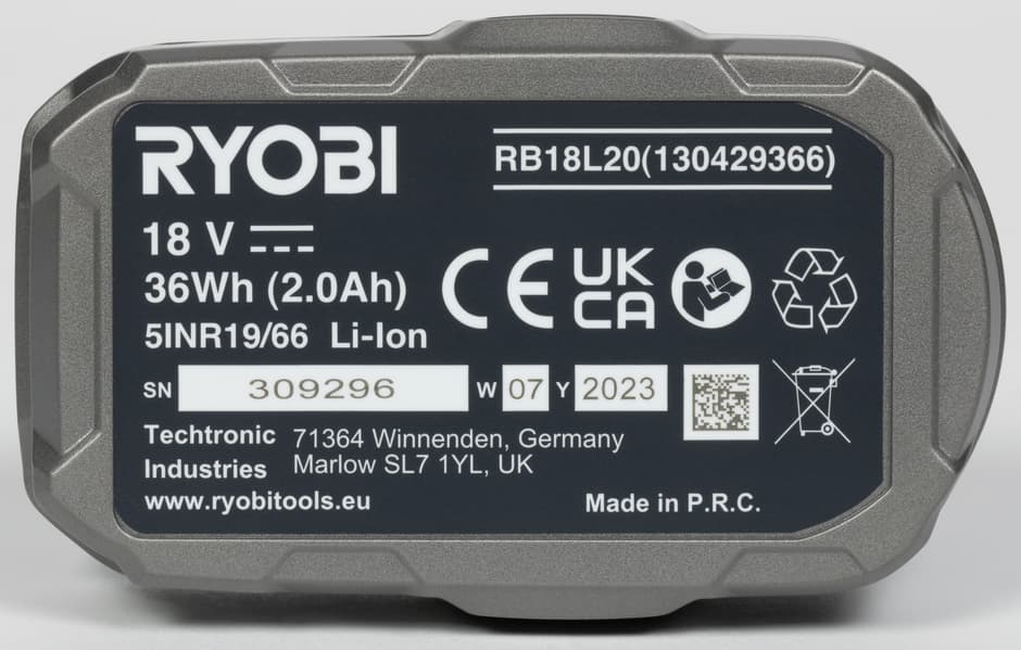 | Тип | съемный литий-ионный, тип One+ Ryobi |