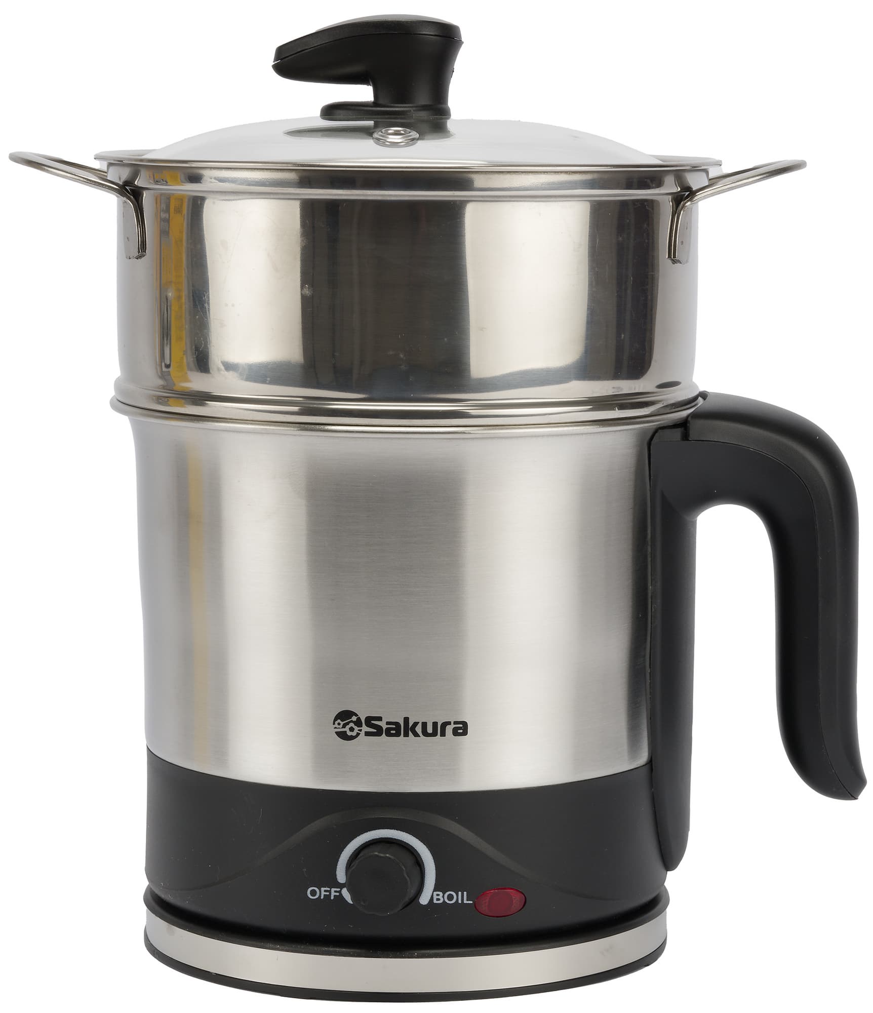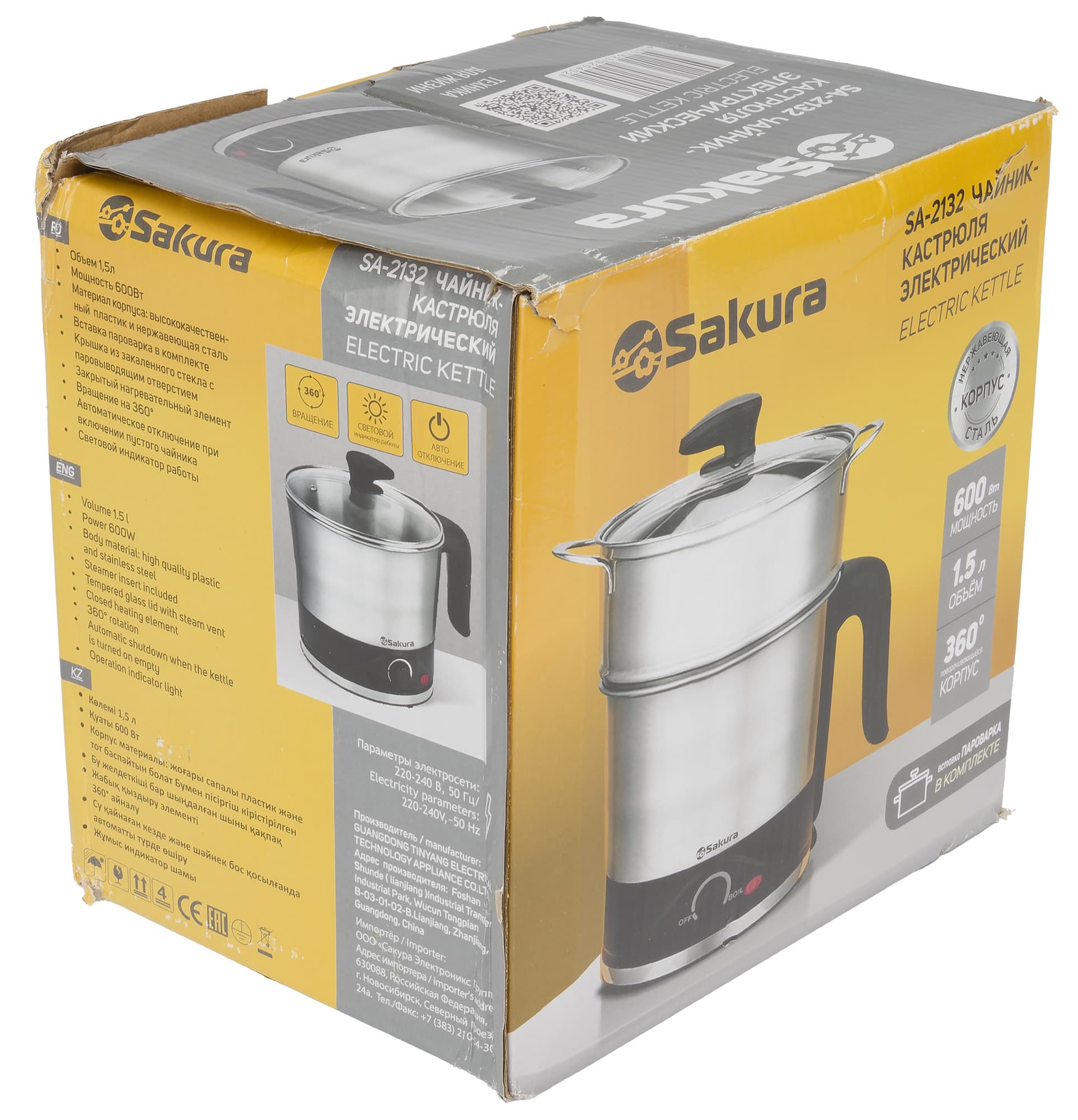 Обычные чайники мы тестировали многократно. Электрические кастрюли — реже, но они тоже попадались. Сегодняшний гость совмещает в себе два этих устройства. Встречайте! Перед нами инновационный чайник-кастрюля Sakura SA-2132. Универсальное решение для тех, кто хочет и чайку попить, и бульон сварить!