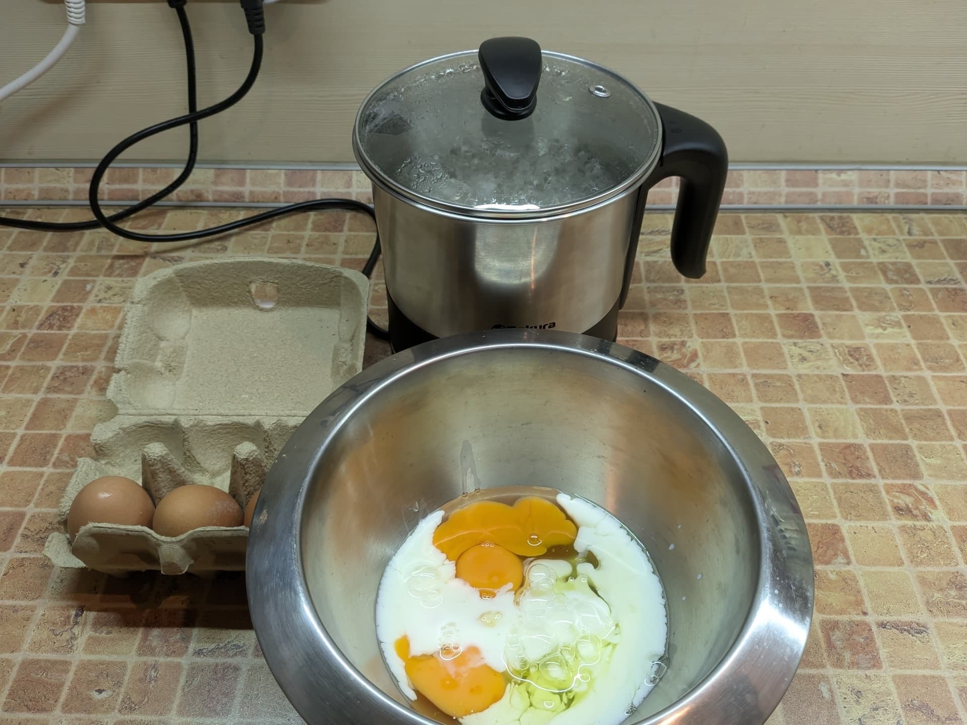 Ну а по истечении 15 минут мы получили... паровой омлет!