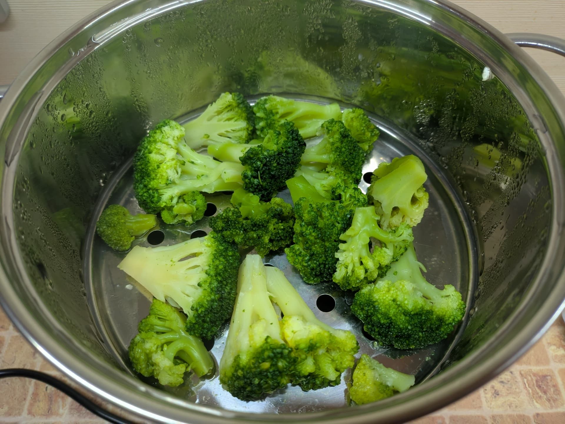 В отличие от теста с пельменями, площадь пароварки не является ограничением, можно положить брокколи в несколько слоев. Конечно, если это нужно.