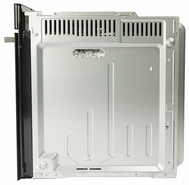 Задняя стенка камеры закрыта каталитической панелью. Шершавое покрытие представляет собой пористый материал, в котором содержится специальное вещество, способное поглощать загрязнения и самоочищаться в момент готовки при температуре выше 200 °C. Подразумевается, что скопившиеся в порах загрязнениях при нагреве разлагаются на безвредные вещества, а потом их легко протереть влажной тряпкой. Информации о сроке эксплуатации этой панели в инструкции мы не нашли.