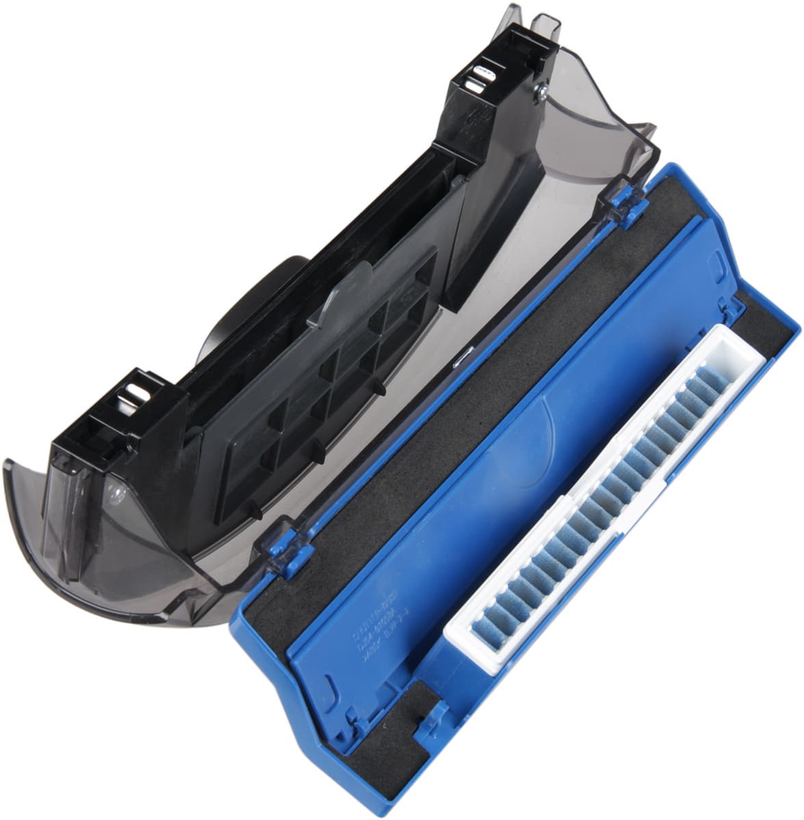Корпус пылесборника частично выполнен из прозрачного слегка тонированного пластика, что позволяет контролировать его наполнение, по крайней мере, пока его стенки не сильно загрязнены. Для очистки пылесборник нужно отсоединить от корпуса пылесоса, откинуть синюю крышку и вытряхнуть накопившуюся грязь, а лучше отсосать ее обычным пылесосом. Им же можно почистить HEPA- и сетчатый фильтры.