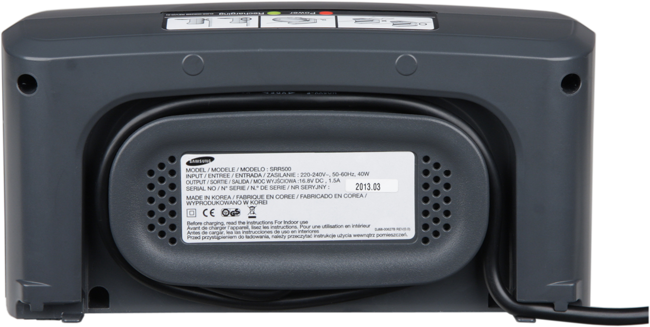 Сочетание указанных особенностей препятствует непредвиденному перемещению базы при маневрах пылесоса. Сзади на корпусе базы есть ниша, куда можно намотать излишки кабеля питания.