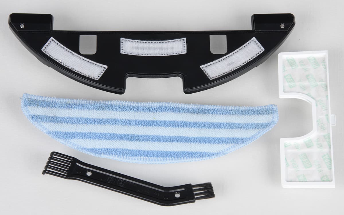 Им же можно почистить HEPA-фильтр, который при сильном загрязнении можно и промыть водой. Дополнительно периодически по мере необходимости нужно очищать главную щетку и удалять намотавшиеся на оси боковых щеток и колес нитки/волосы. Для выполнения этих процедур можно воспользоваться прилагаемой щеточкой-скребком. Очистку главной щетки удобнее выполнять, вынув ее из отсека.