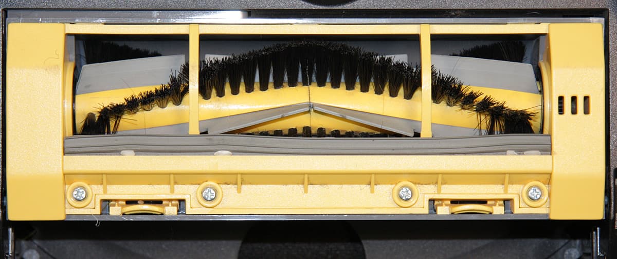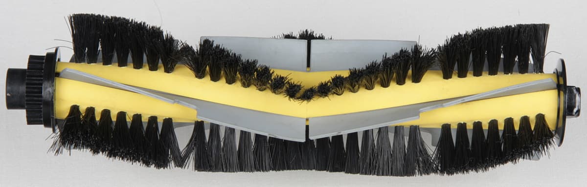 Отметим, что вращается она на двух бронзовых подшипниках скольжения. Щетка очищается без каких-либо проблем, за исключением щелей между черными торцевыми заглушками и желтым валом, куда наматываются волосы и тонкие волокна. Впрочем, с помощью плоской и крестовой отверток эти заглушки снимаются, после чего все намотавшееся легко удаляется. Насадка из микрофибры стирается и сушится обычным образом. Завершает очистку пылесоса протирка корпуса с особым вниманием к окошкам ИК-датчиков и камеры. Предупредим, что этот пылесос недопустимо использовать во влажном помещении или на поверхностях с разлитыми жидкостями. После контакта пылесоса с жидкостями в лучшем случае придется очищать его от налипшего слоя пыли, в худшем случае пылесос может выйти из строя.