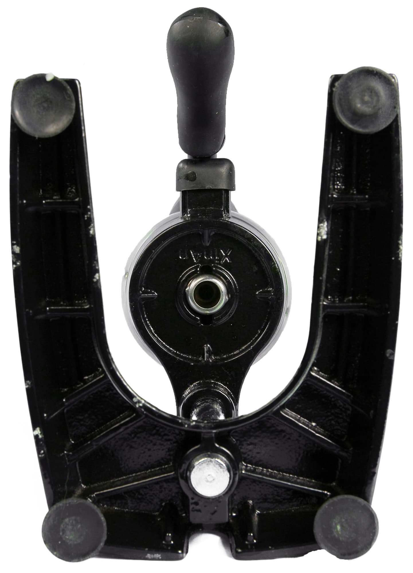 Ручка пресса оснащена специальной резиновой насадкой. Из того же материала сделана насадка, защищающая металл в месте, где ручка упирается в корпус (в нижнем положении).