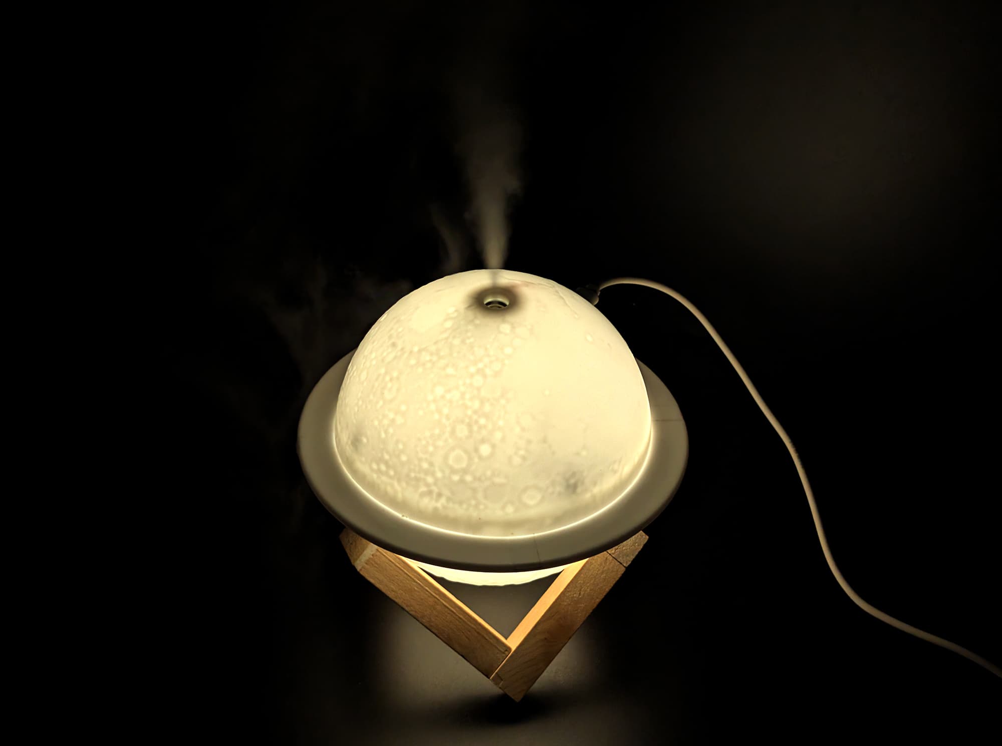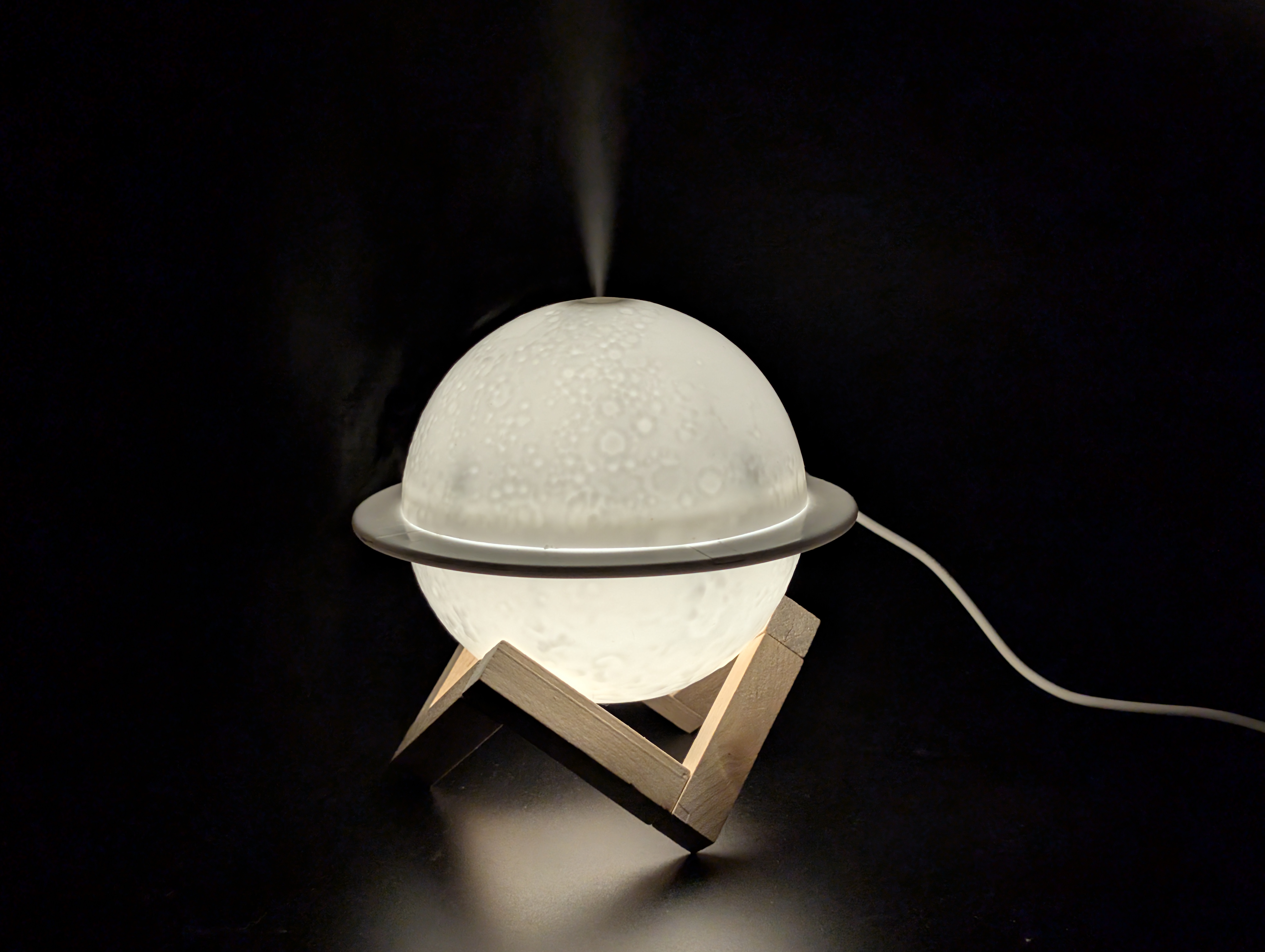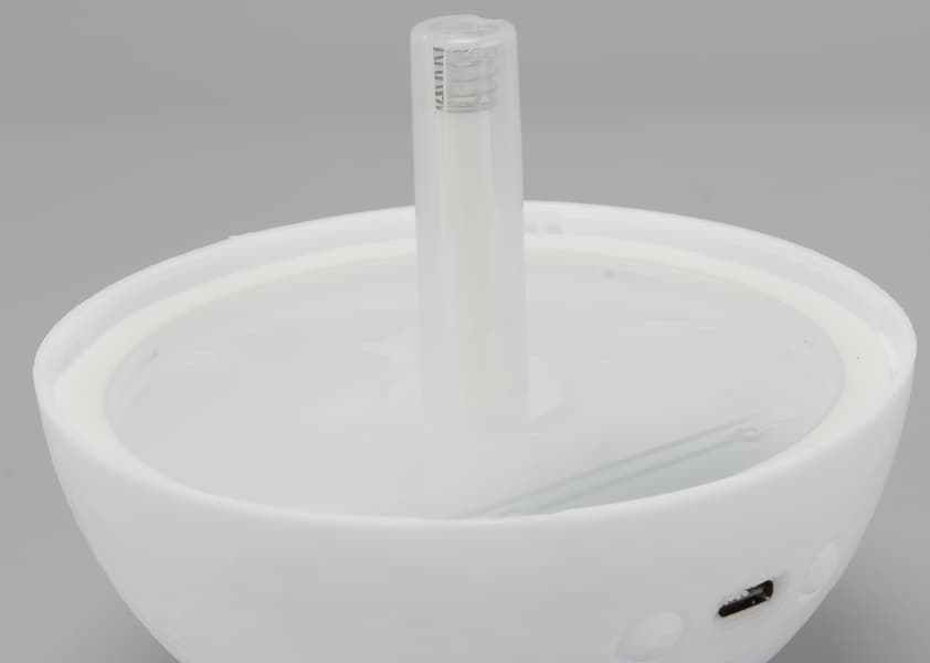 При выборе места для прибора следует учитывать, что даже легкий наклон может привести к вытекании воды из бака: «сатурн» никак не крепится к подставке и не слишком устойчив. Об этом стоит помнить и при прокладке USB-кабеля от источника питания.