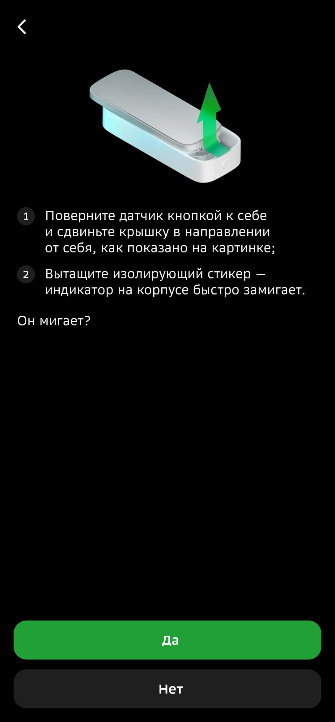 Под батарейкой размещен элемент, выключающий устройство на время транспортировки — перед началом эксплуатации его нужно удалить. Если забудете — приложение напомнит. Заходим на страницу добавления устройств, находим нужный датчик — запускаем подключение.