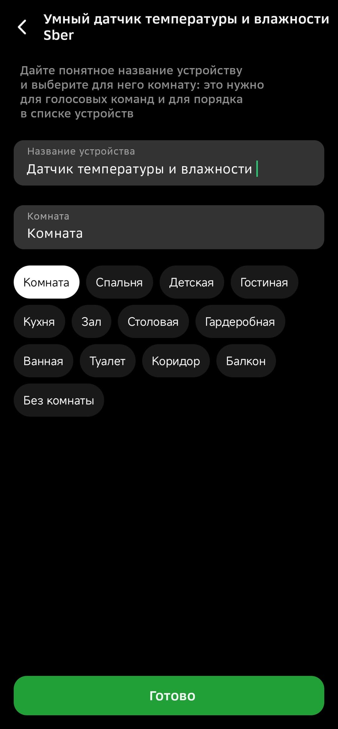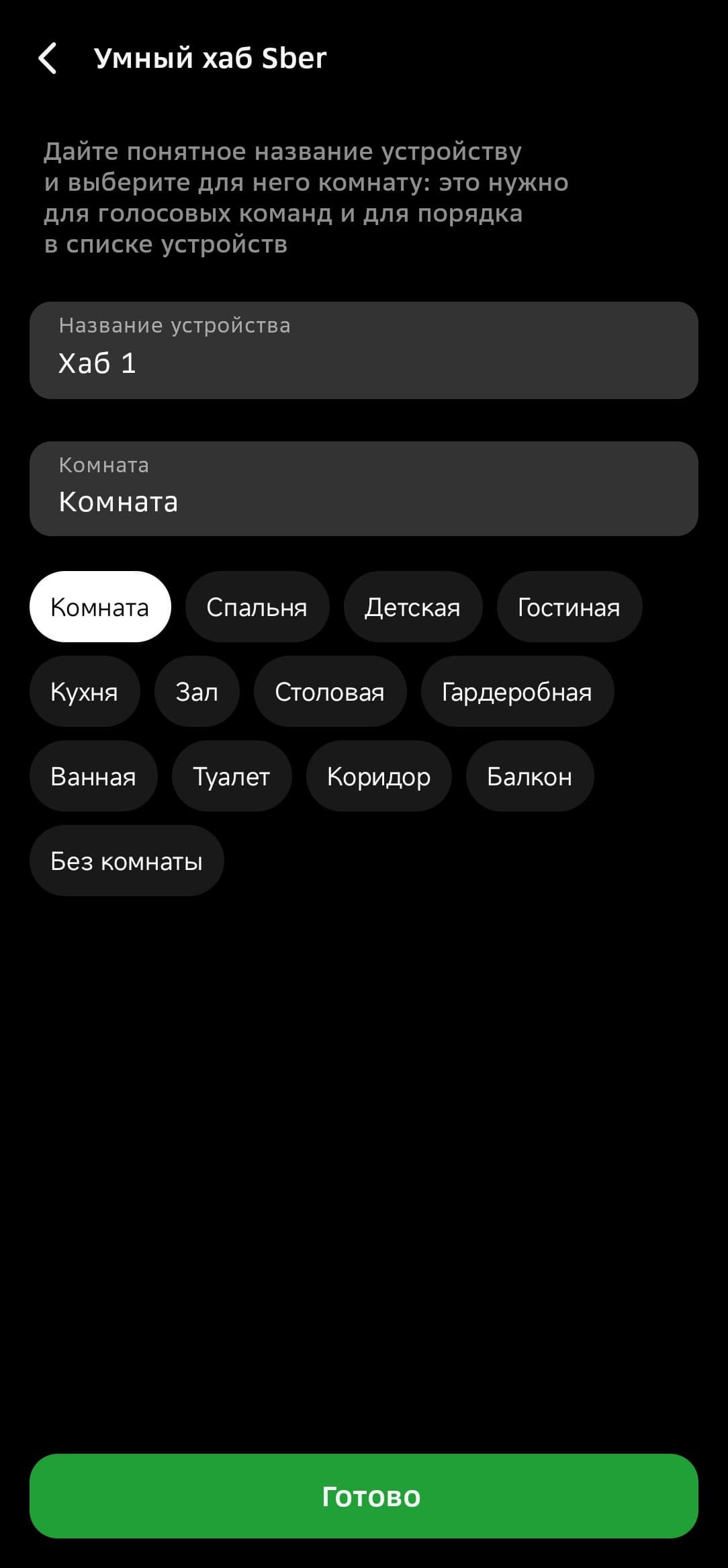 Соединение с хабом происходит уже знакомым нам образом, приложение само напоминает, что нужно сделать. Далее выбираем комнату, при необходимости — задаем новое имя.