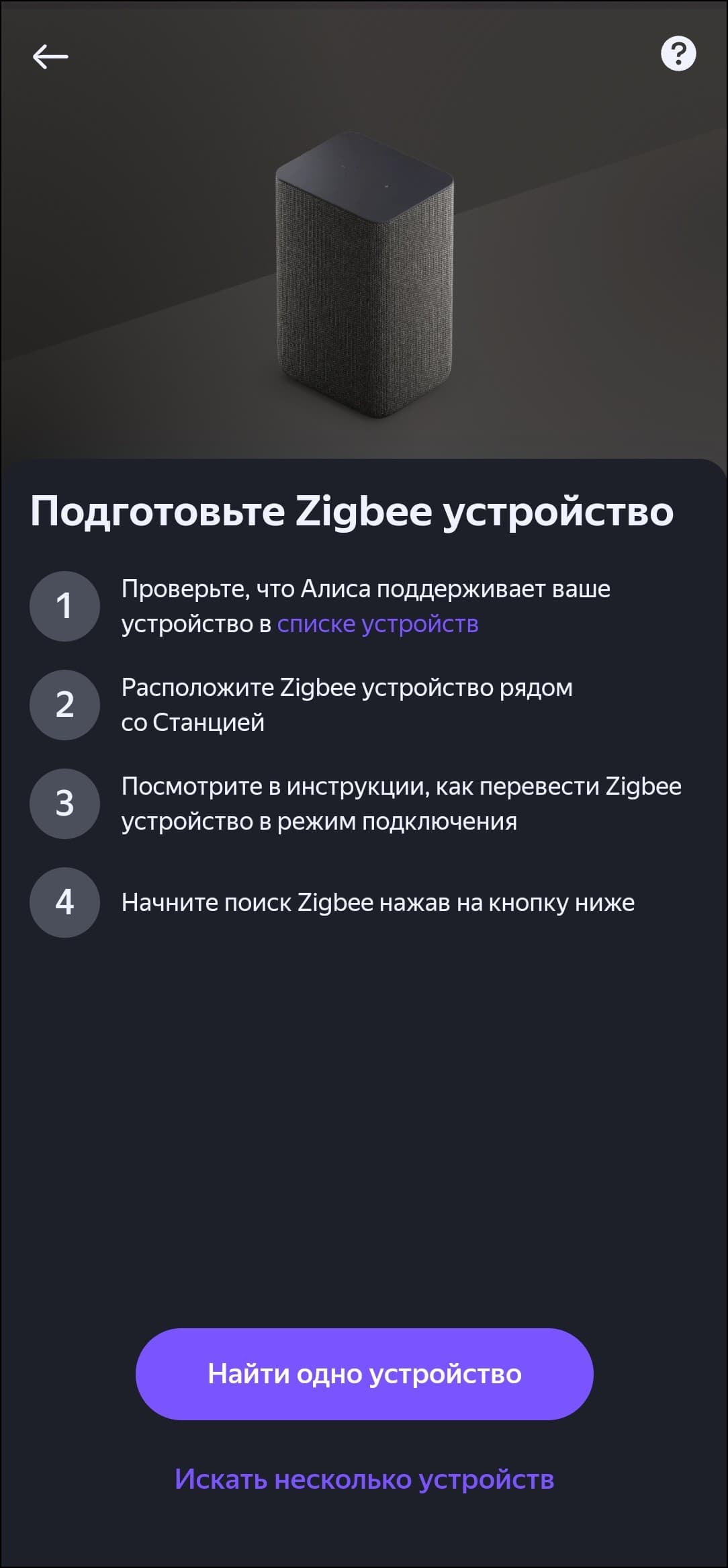 Заходим на страницу хаба, жмем на добавление стороннего устройства Zigbee... Ни один из четырех датчиков обнаружен не был.