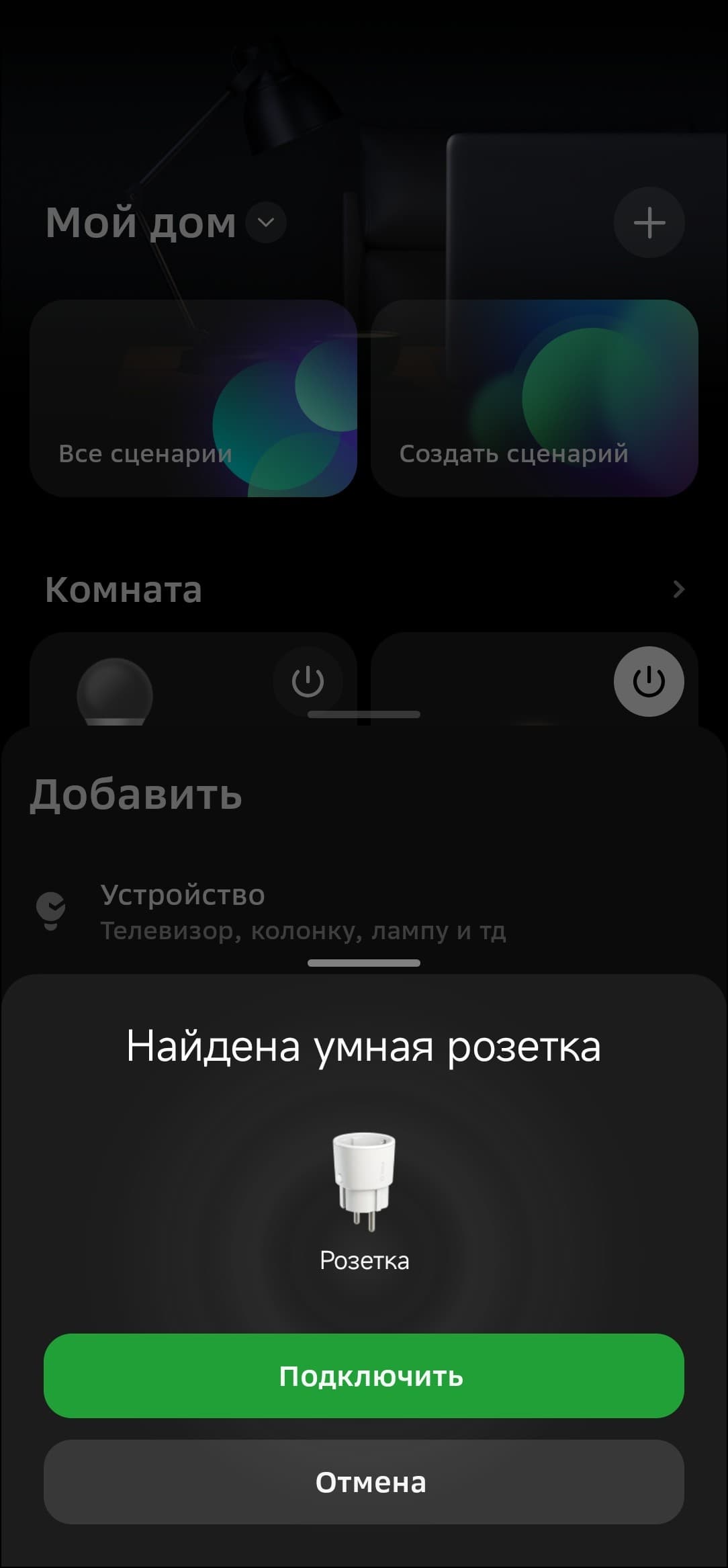 На поиск устройства уходит буквально несколько секунд, дальше можно его переименовать и добавить в какую-нибудь из комнат.