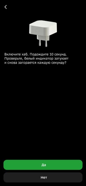 Для подключения хаба нужно вставить его в розетку и дождаться, пока светодиодный индикатор перейдет в режим «дыхания» белым цветом. Далее открываем приложение «Салют» и немного ждем — устройство должно обнаружиться автоматически. Если этого не произошло — есть смысл проверить, включен ли Bluetooth на телефоне, и есть ли у приложения разрешение на его использование. Соглашаемся с подключением, немного ждем — готово.