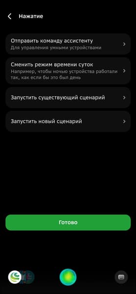 Поддерживаются три типа нажатий: короткое, двойное и длинное. На каждое можно «повесить» свое действие или сценарий. Список действий практически не ограничен, так как один из вариантов ответа на нажатие — это команда голосовому ассистенту.