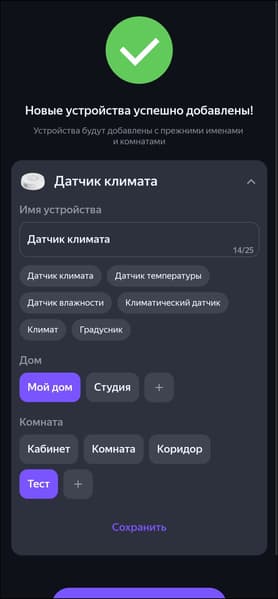 Идем в обратную сторону — пытаемся добавить датчики Сбера в «умный дом» Яндекса. Терпим неудачу за неудачей, но неожиданно всё срабатывает с датчиком климата.