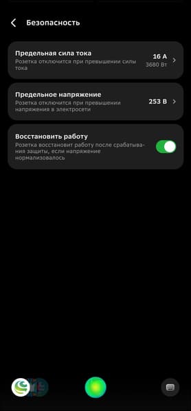Самое же интересное, находится на вкладке «Безопасность». Здесь можно настроить отключение розетки при достижении предельной силы тока или напряжения — полезная функция, которая поможет обеспечить безопасность подключенных приборов и корректную работу удаленного управления в случае проблем с энергоснабжением. Правда, сами разработчики признают, что для защиты от резких скачков напряжения всё же надо использовать специально предназначенные для этого решения — скорости срабатывания розетки может не хватить.