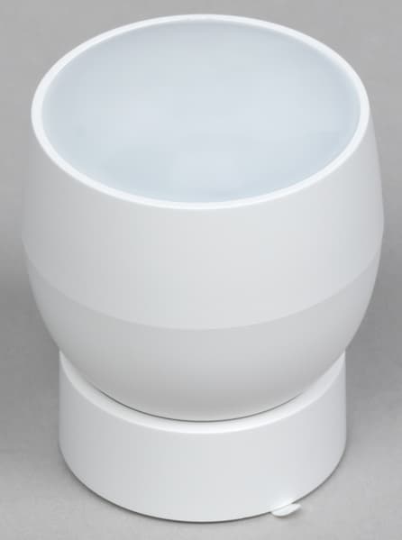 Голосовые команды — это удобно, но далеко не всегда. Некоторые действия лучше выполнять простым нажатием на кнопку, теперь такая возможность в «умном доме» Сбера тоже имеется. Кнопка получилась компактная и очень удобная — нажимается вся верхняя панель, можно просто хлопнуть по ней ладонью, а не искать пальцем середину. По центру верхней панели размещен небольшой логотип производителя.