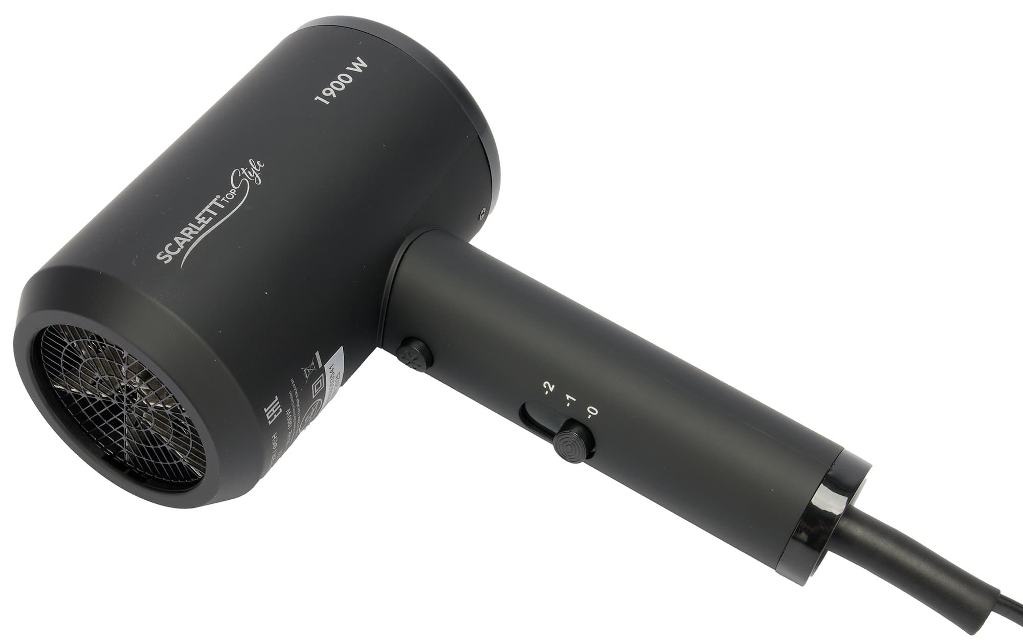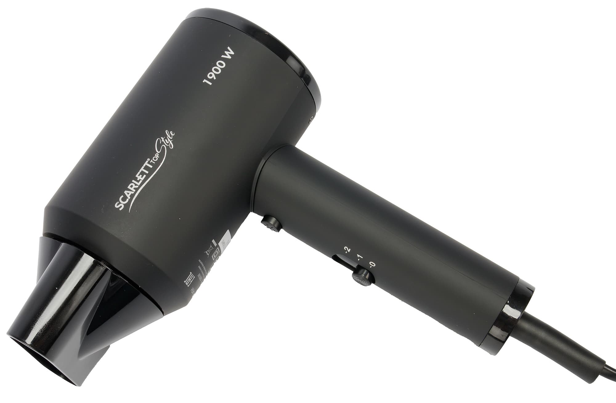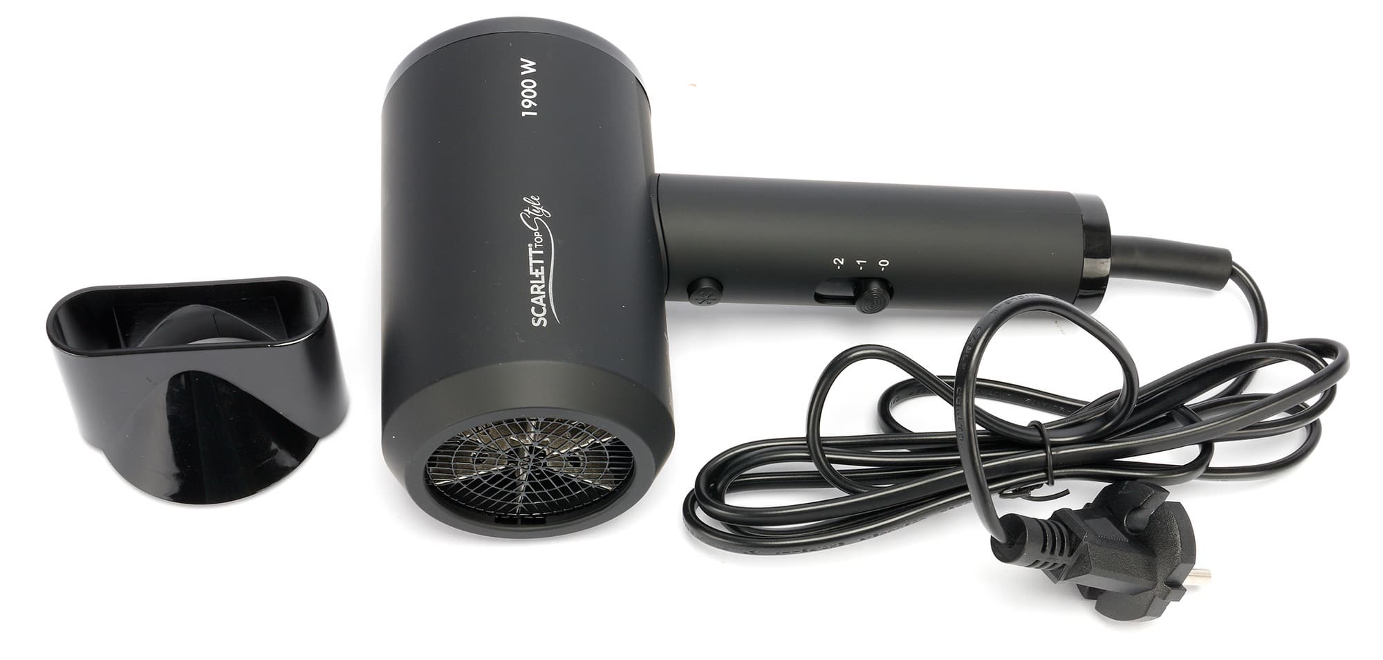 Фен Scarlett SC-HD70I37 относится к простым бюджетным устройствам для домашнего использования с минимальным набором режимов и одной единственной насадкой в виде концентратора.