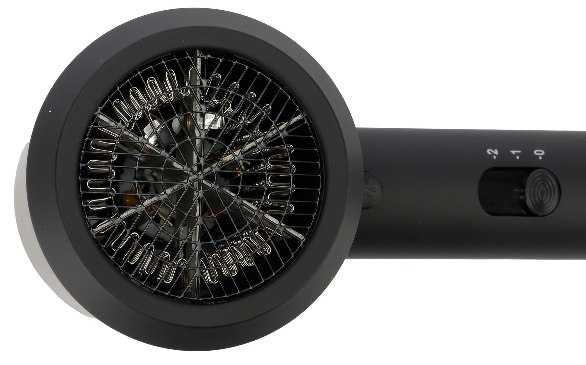 Отдельной регулировки температуры в этой модели нет — на низкой скорости фен греет умеренно, максимальный нагрев идет только при включении второй скорости. Холодный воздух можно включить на обеих скоростях. Для этого достаточно зажать кнопку над сдвижным переключателем.