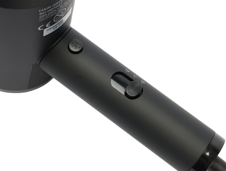 Scarlett SC-HD70I37 — компактный недорогой фен с хорошим уровнем мощности. У прибора две скорости обдува: на первой он работает с умеренным нагревом воздуха, на второй — с повышенной температурой. Дополнительно, для фиксации укладки предусмотрен холодный обдув, работающий на обеих скоростях. Для создания прикорневого объема и вытягивания прядей в комплекте устройства предусмотрен концентратор.