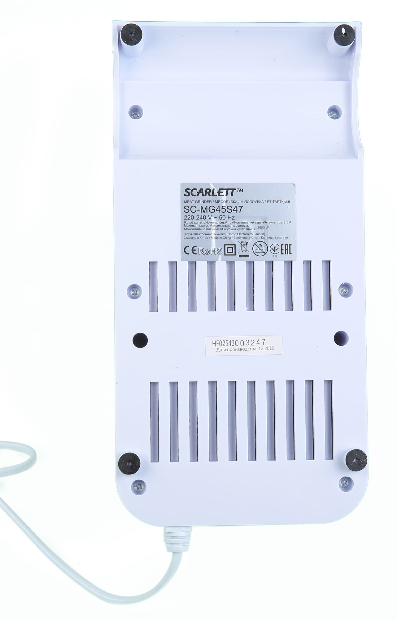 | Электрическая мясорубка Scarlett SC-MG45S47 предоставлена для тестирования компанией Юлмарт |