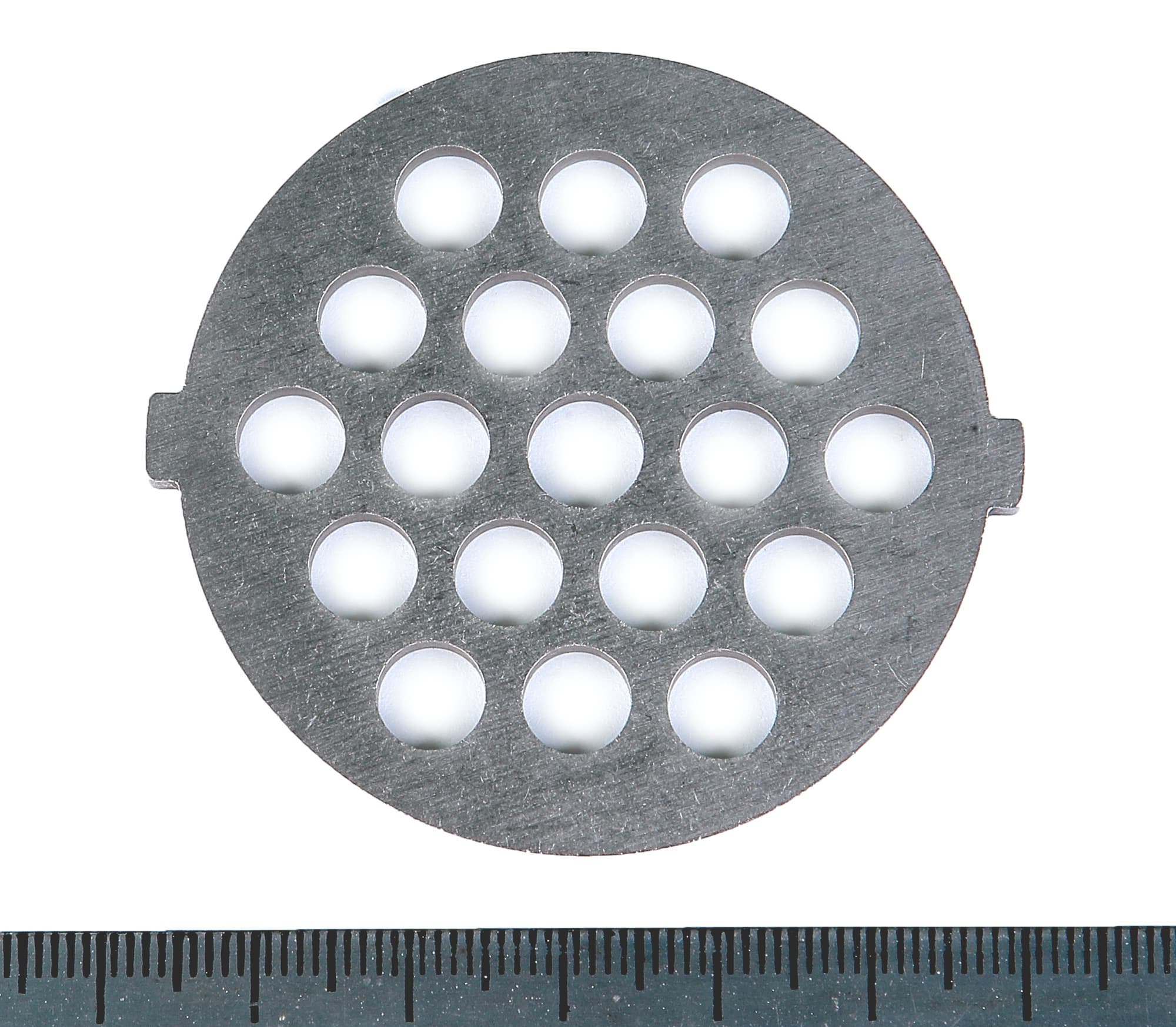 В комплект к мясорубке Scarlett SC-MG-45S47 входит лишь одна перфорированная решетка с диаметром отверстий в 7 мм. Толщина решетки — около 3,5 мм.