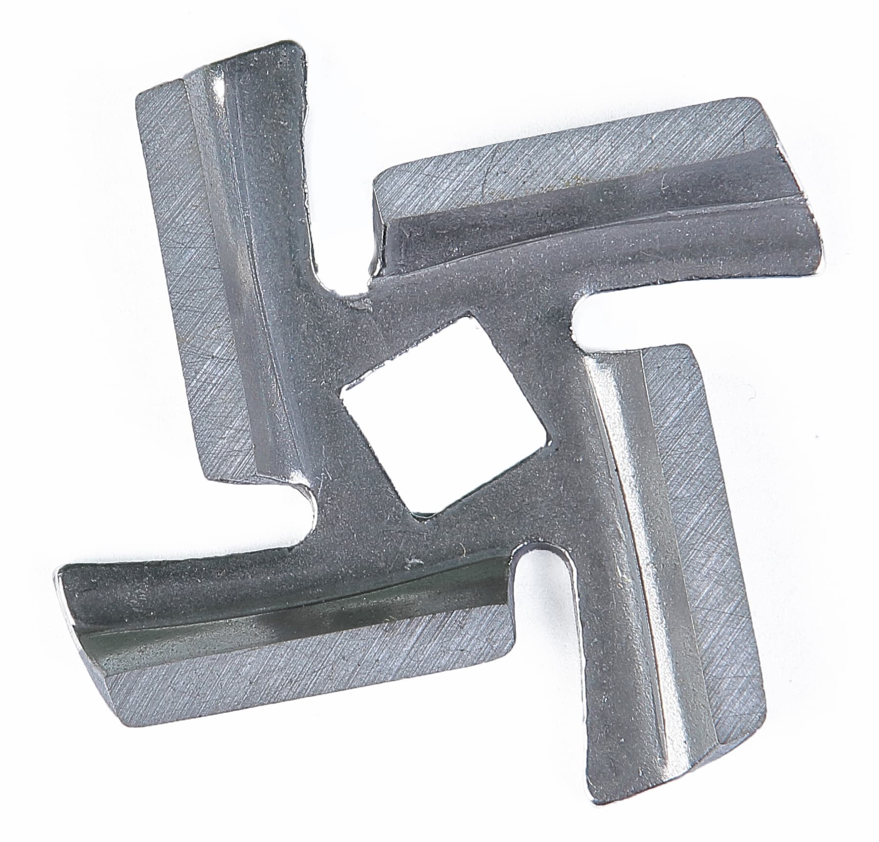 Конструкция ножа не отличается оригинальностью. Нож не литой, а отштампованный из стального листа толщиной в 2,5 мм. Заточка граней не производит особого впечатления — более того, нам показалось, что ножи недостаточно остры. Рассмотреть форму и качество изготовления ножа можно на снимке: