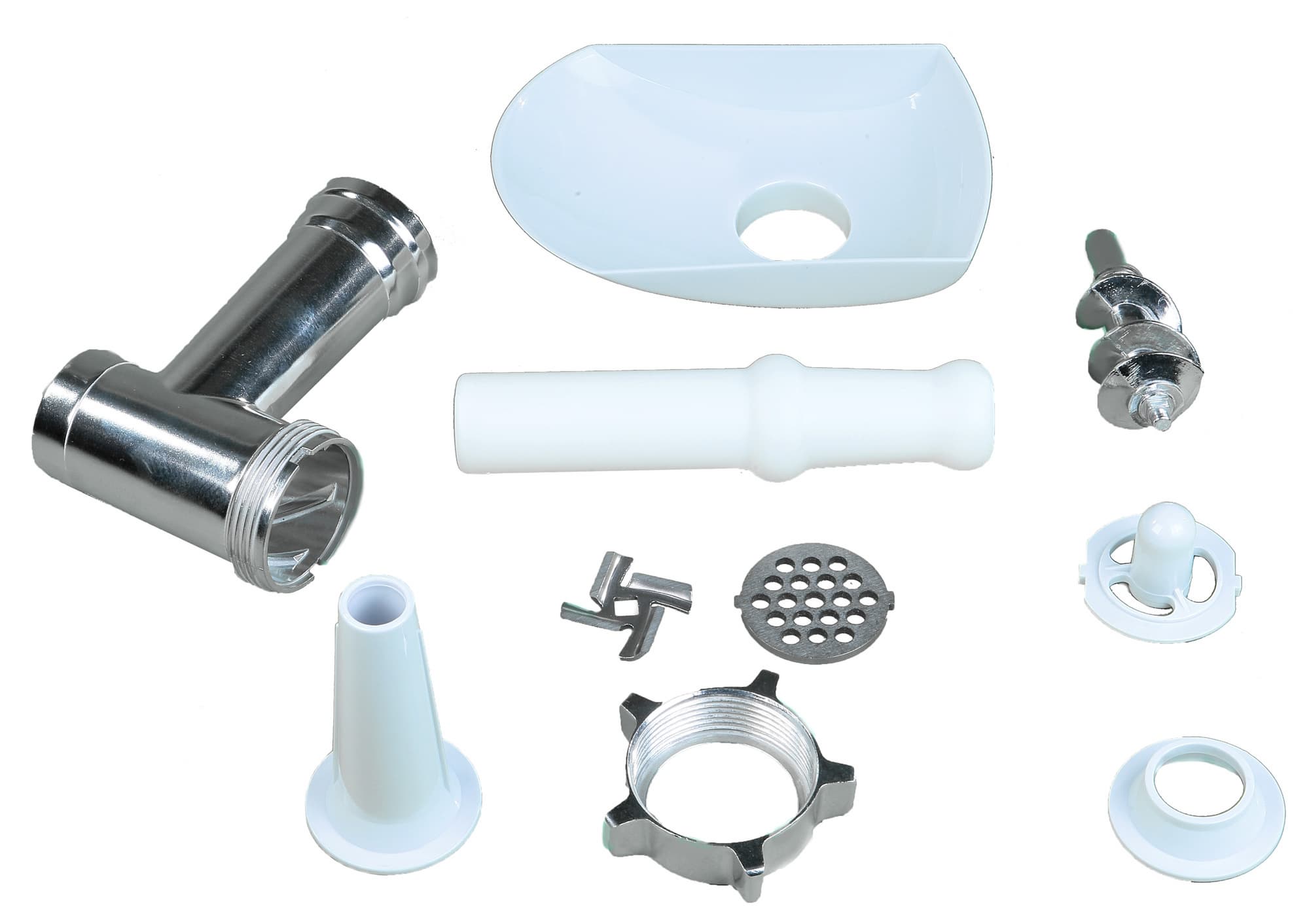 Дополнительные аксессуары — насадки для кеббе и колбасок — также имеют обычную форму. Они без труда крепятся на съемной насадке традиционным способом.