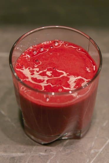 Напиток стал воздушным, без единого намека на кусочки вишен или банана. У нас получилось 750 мл смузи идеальной пышной консистенции.