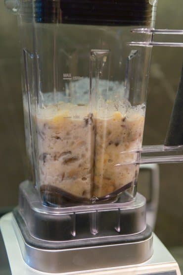 Мы поместили в кувшин нарезанный банан, подлили около 100 мл миндального молока и сверху засыпали вишней прямо из морозилки. Включили блендер в автоматическом режиме Blend и стали наблюдать. Цикл программы рассчитан на минуту, но уже через 20 секунд фруктово-ягодная масса с огромной скоростью летающая по кувшину выглядела однородной и мы выключили прибор.