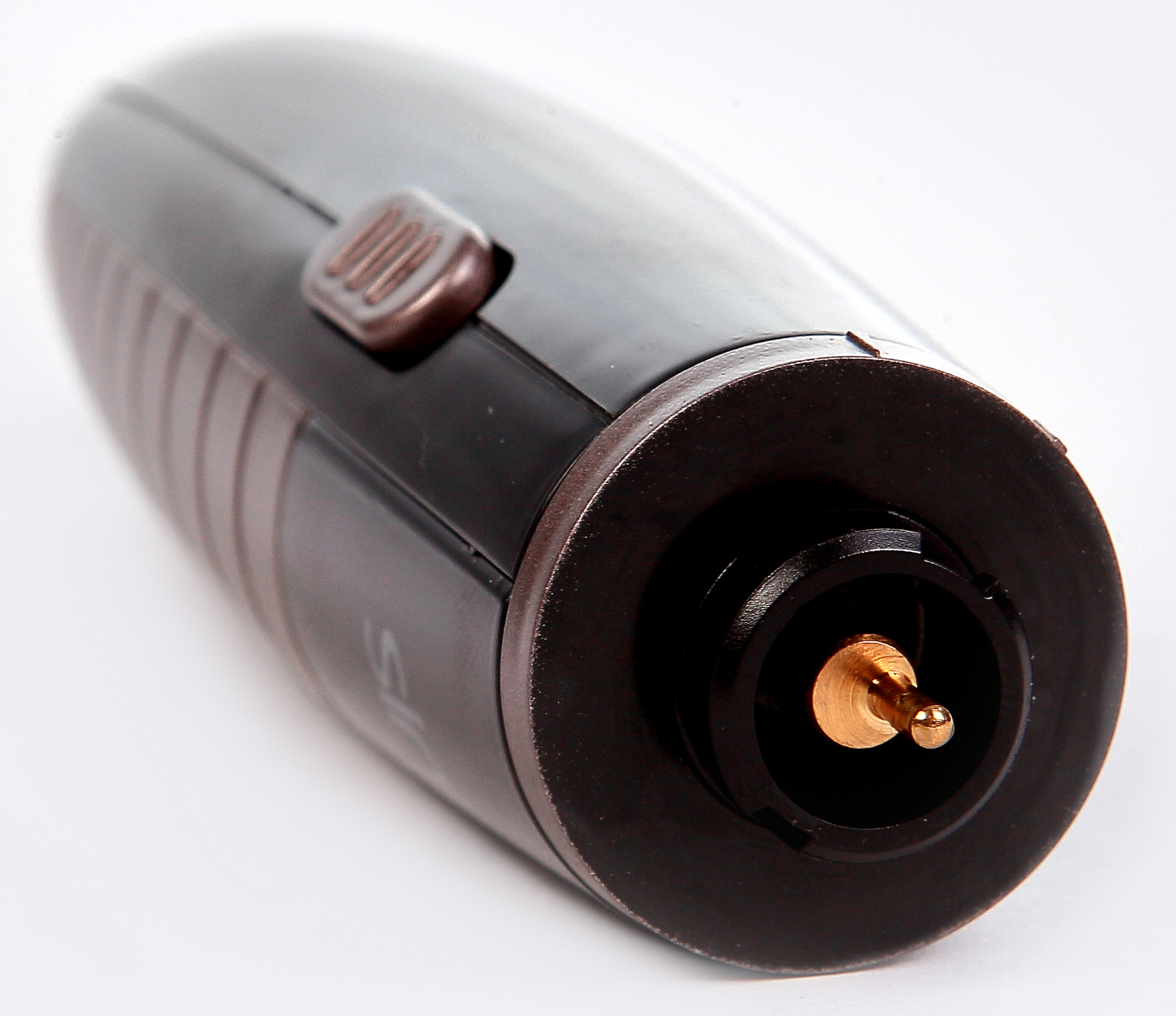 На торце хорошо виден эксцентрик, вращение которого внутри головки простейшим способом переводится в возвратно-поступательное движение ножей (или еще более простым способом остается вращательным — в случае с насадкой для бритья волос в носу и ушах). Рискнем предположить, что эксцентрик, ничтоже сумняшеся, насажен непосредственно на вал двигателя — вот вам и вся схема.