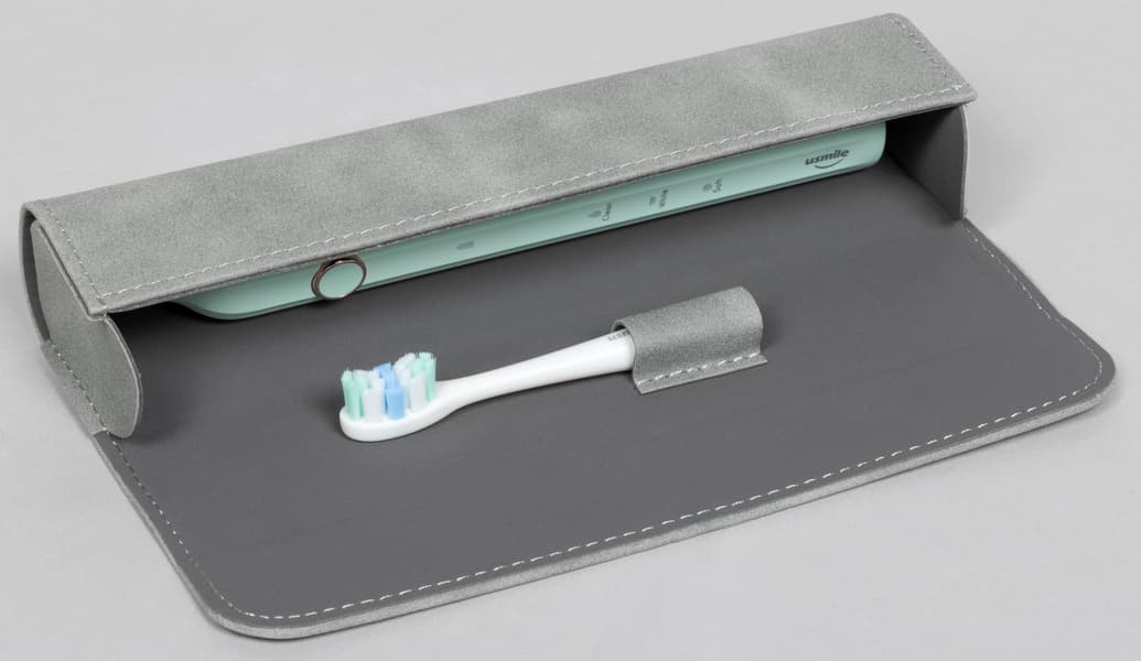 Для длительного хранения щетки и для перевозки (например, в путешествиях) предназначен стильный серый футляр, закрывающийся на магнитную защелку.