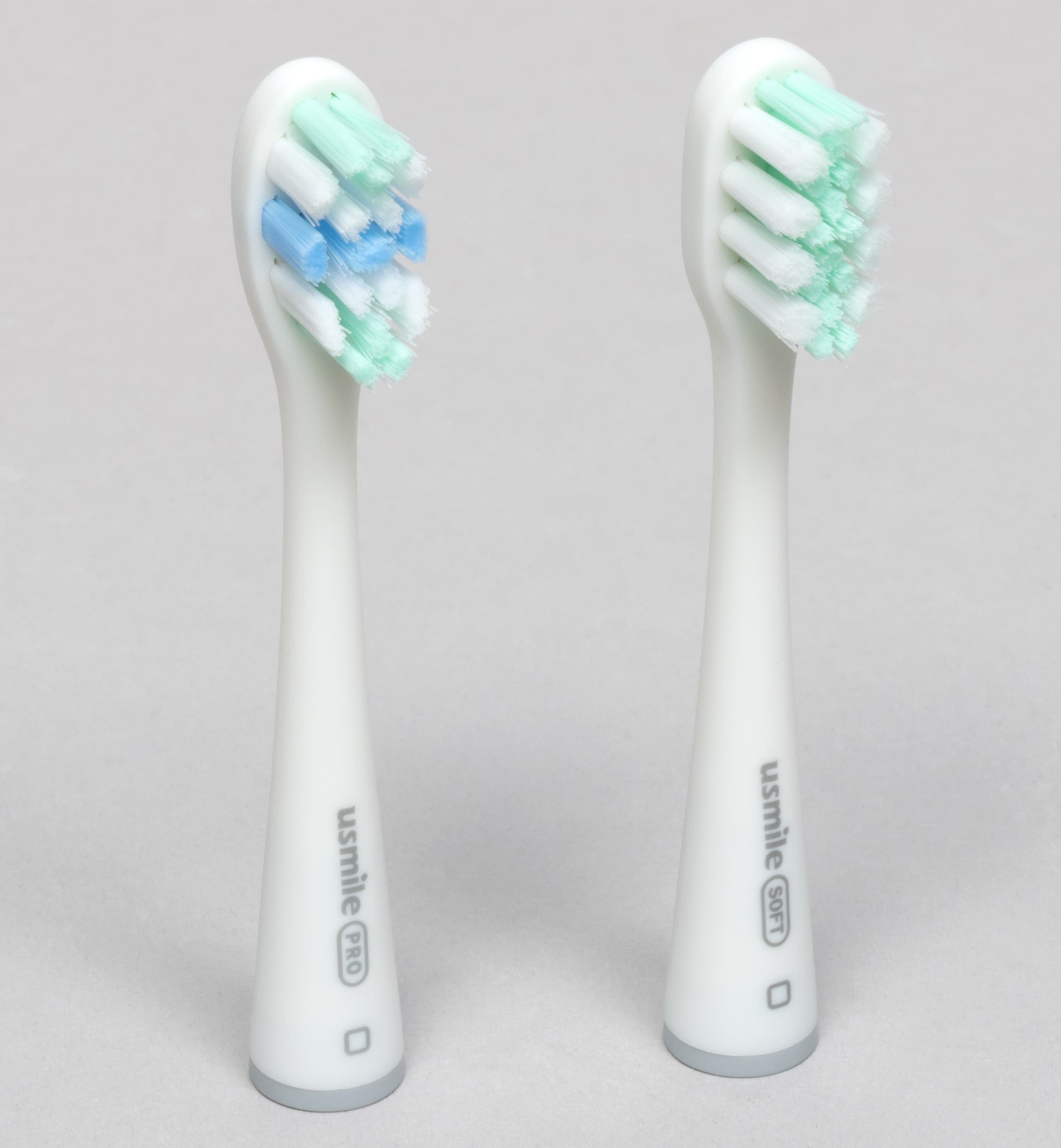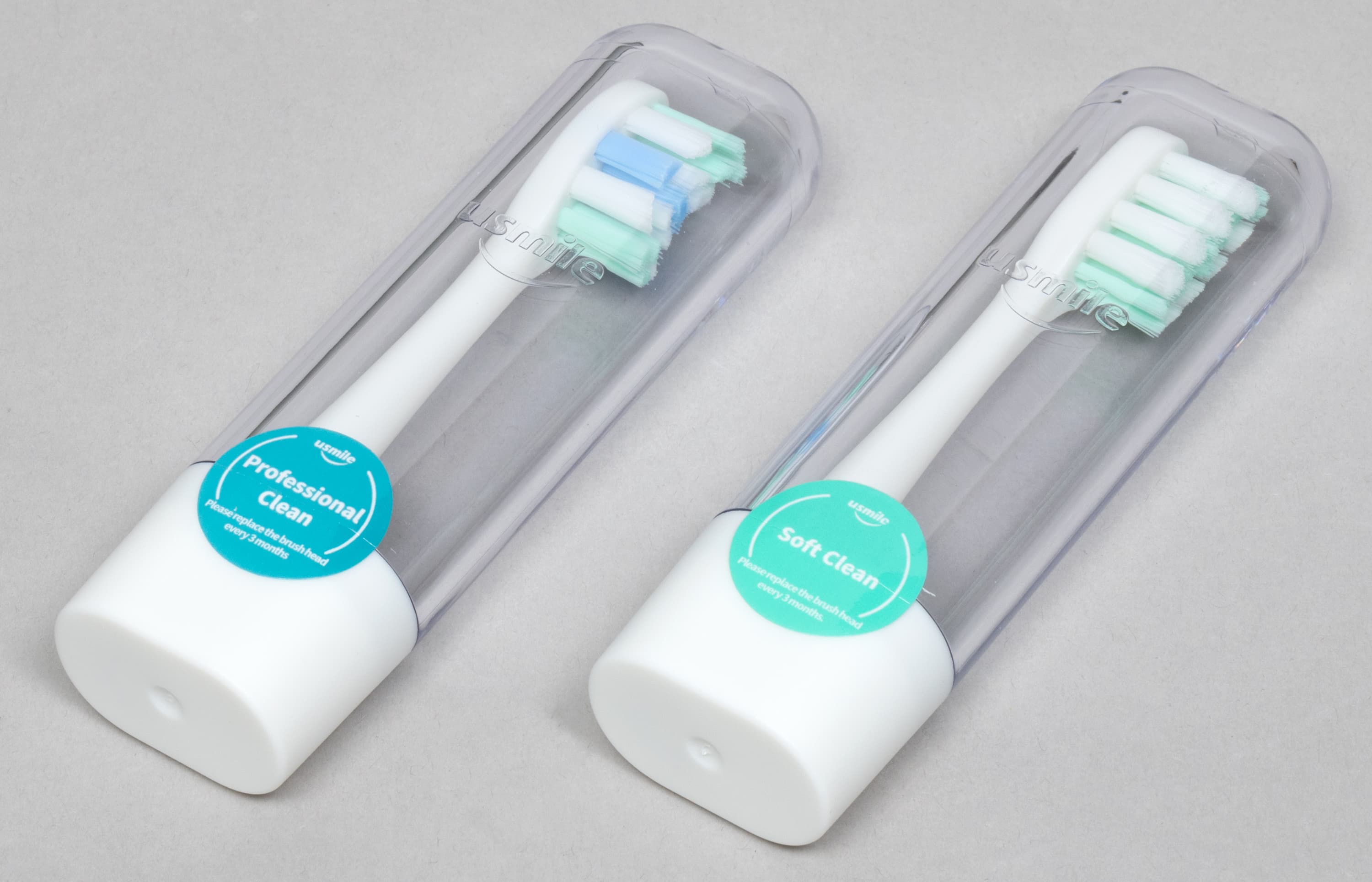 В комплекте зубной щетки поставляются две насадки: мягкая (soft), и «профессиональная» (professional) со щетиной средней жесткости.