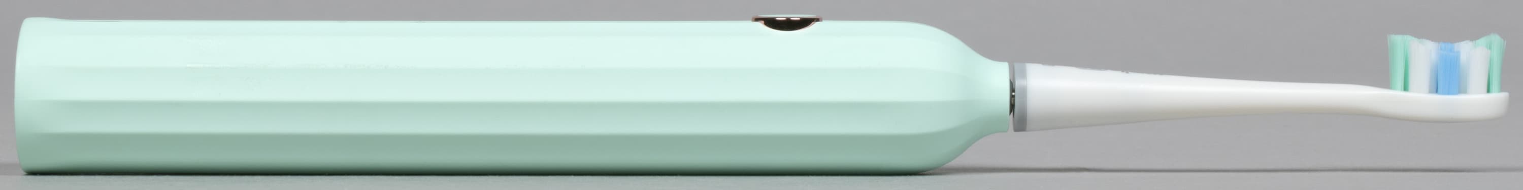 Корпус нашей щетки сделан из матового пластика нежно-мятного цвета. Отметим, что устройство доступно в разных цветах, так что каждый может подобрать себе щетку по вкусу (или, например, можно купить домой две разноцветные щетки чтобы не путать их между собой).