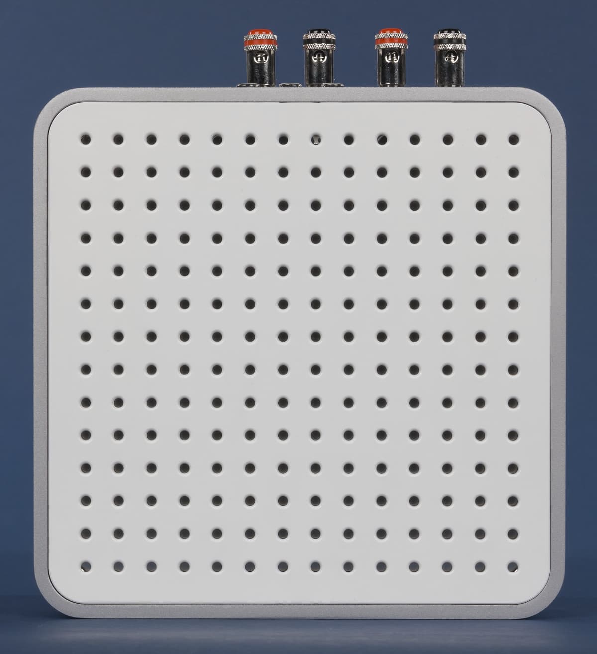 Верхняя панель и дно оборудованы отверстиями, служащими для пассивной вентиляции электронной начинки. На металлической части передней панели предусмотрен многоцветный индикатор состояния, кнопки отключения звука (выполняет функции паузы и перехода на следующий трек, а такие используется для сброса настроек) и регулировки громкости.