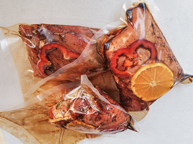 Принцип приготовления остается тем же самым: вакуумируем продукты, закладываем их в SkyCooker RMC-M92S, устанавливаем нужные температуру и время и ждем. Результат оказывается практически таким же, как и в традиционных су-видах. Разве что в стейках, требующих особой точности при приготовлении, возможны некоторые отклонения в степени прожарки.