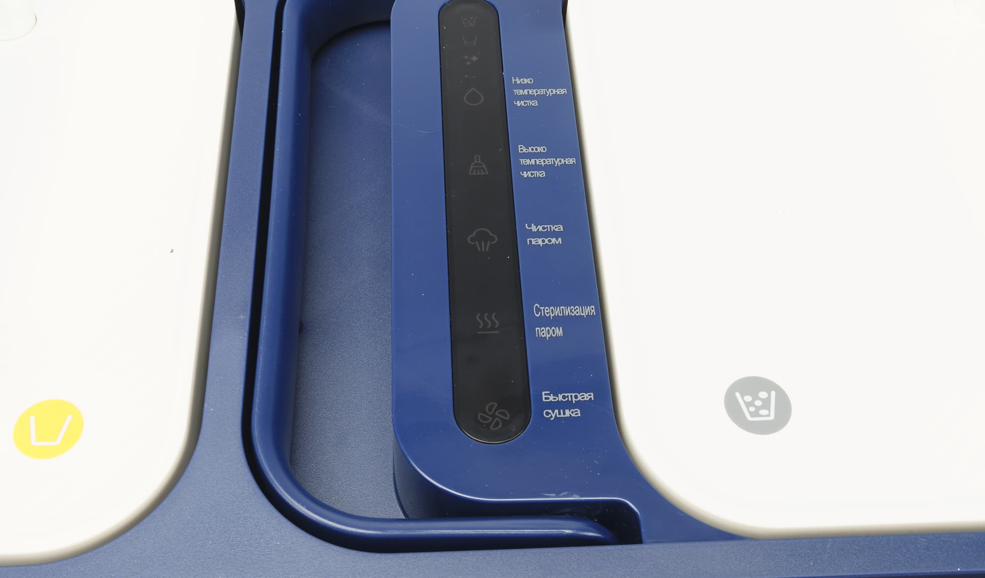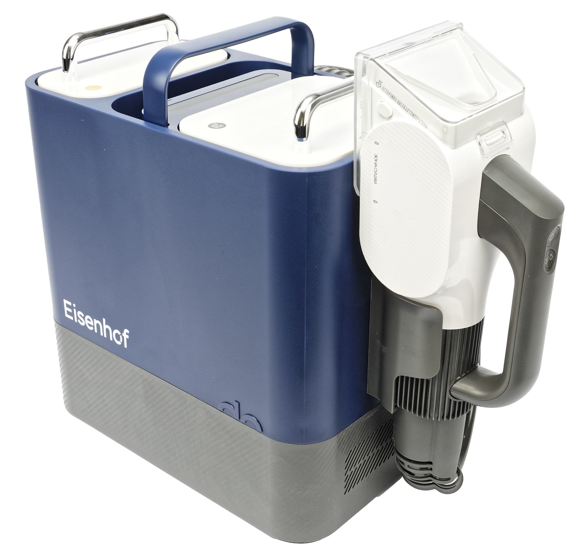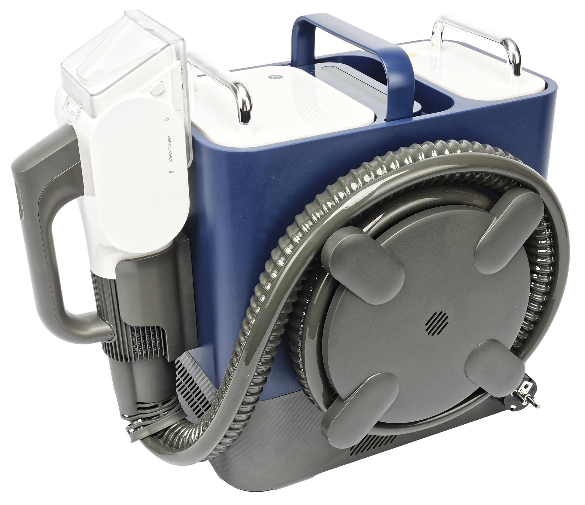 Необычный — мы же привыкли к вертикальному формату — моющий пылесос предназначен для тщательной очистки мягкой мебели, ковровых покрытий и салона автомобиля от самых стойких загрязнений. Модель имеет мощность 2000 Вт, обеспечивает мощность всасывания до 211 аВт и проводит низкотемпературную чистку, высокотемпературная чистку, чистку паром, стерилизацию паром, сушит вымытые поверхности горячим воздухом и проводит самоочистку — таковы режимы работы прибора. О ходе работы и неполадках оповещает голосовой помощник.