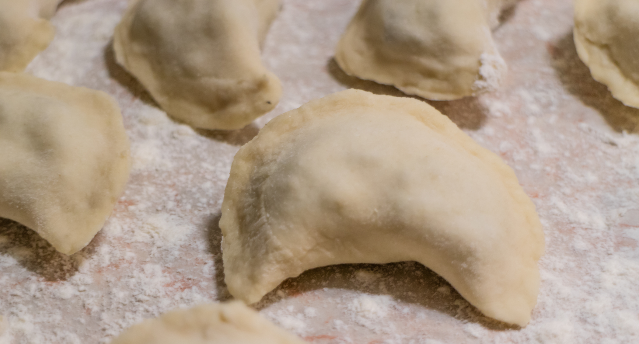 Припорошили поверхность стола мукой и налепили вареники, часть из которых тут же отварили.