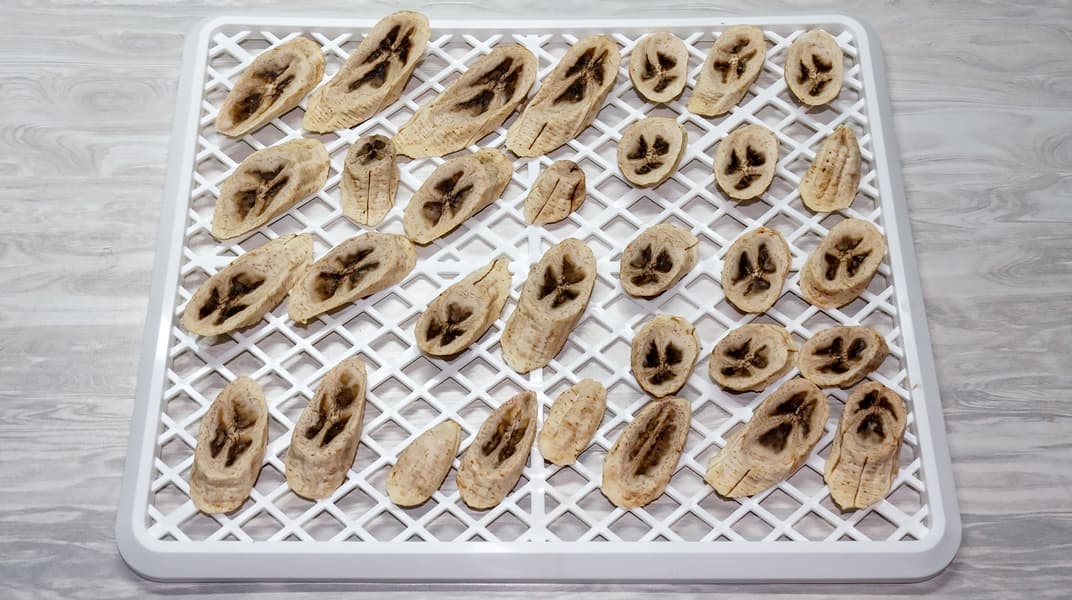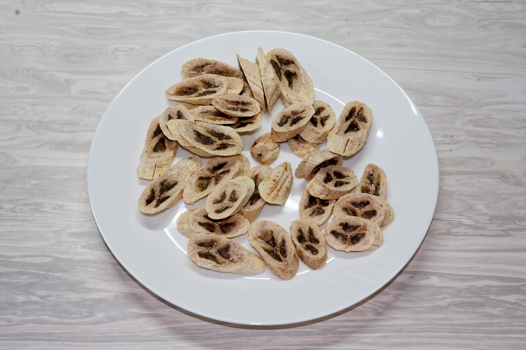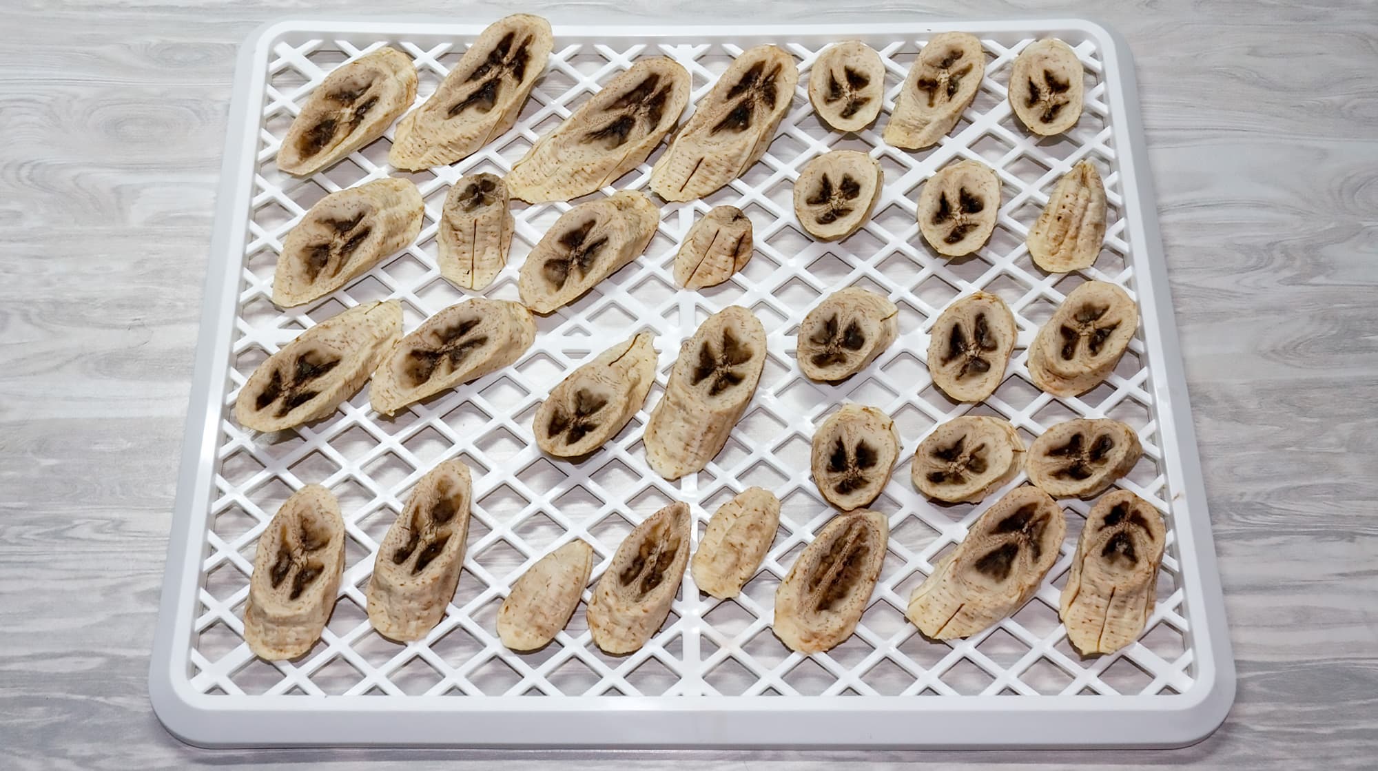 Нарезанные дольки бананов мы сушили 7 часов при температуре 65 градусов — и перестарались.