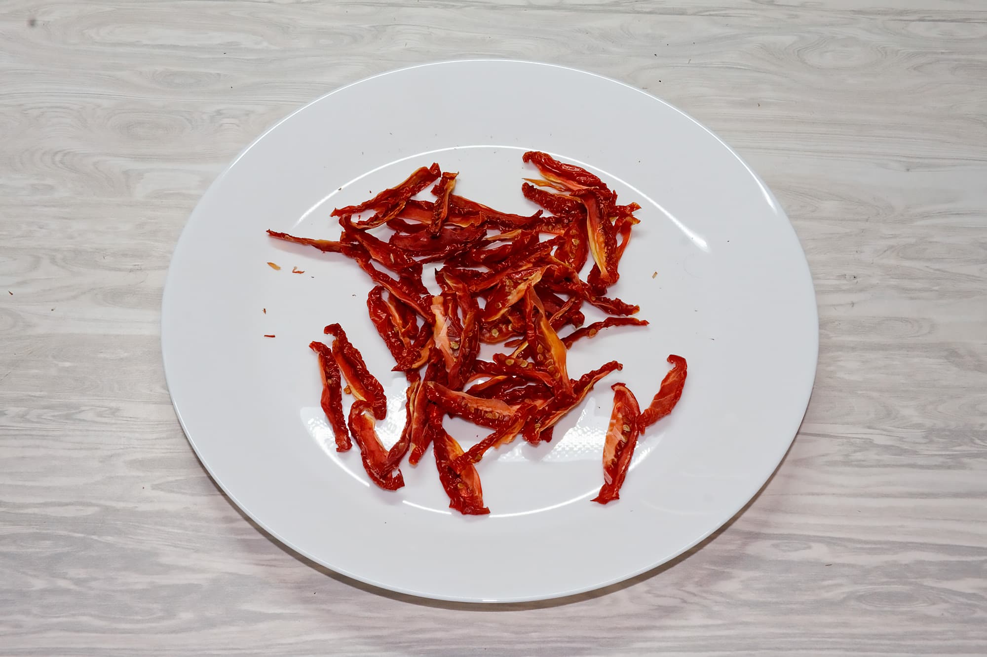 Сушеные томаты оказались идеальными — мягкими, но не ломкими, без видимого содержания влаги.