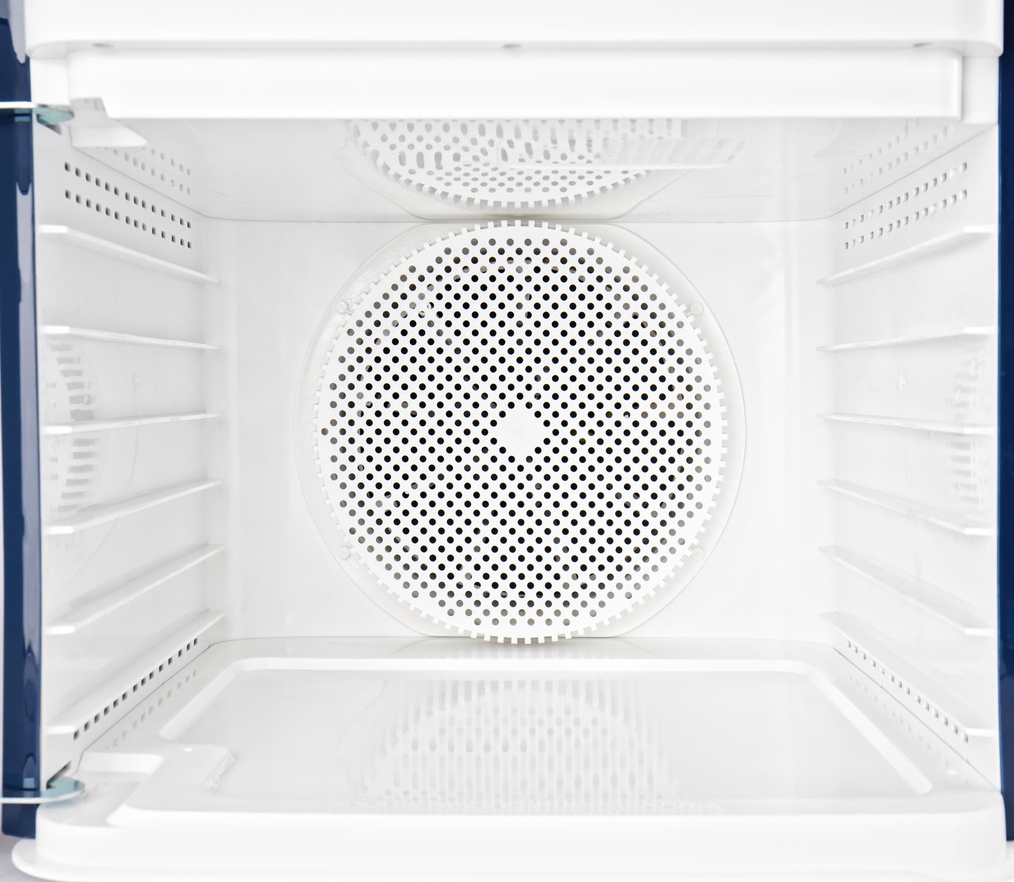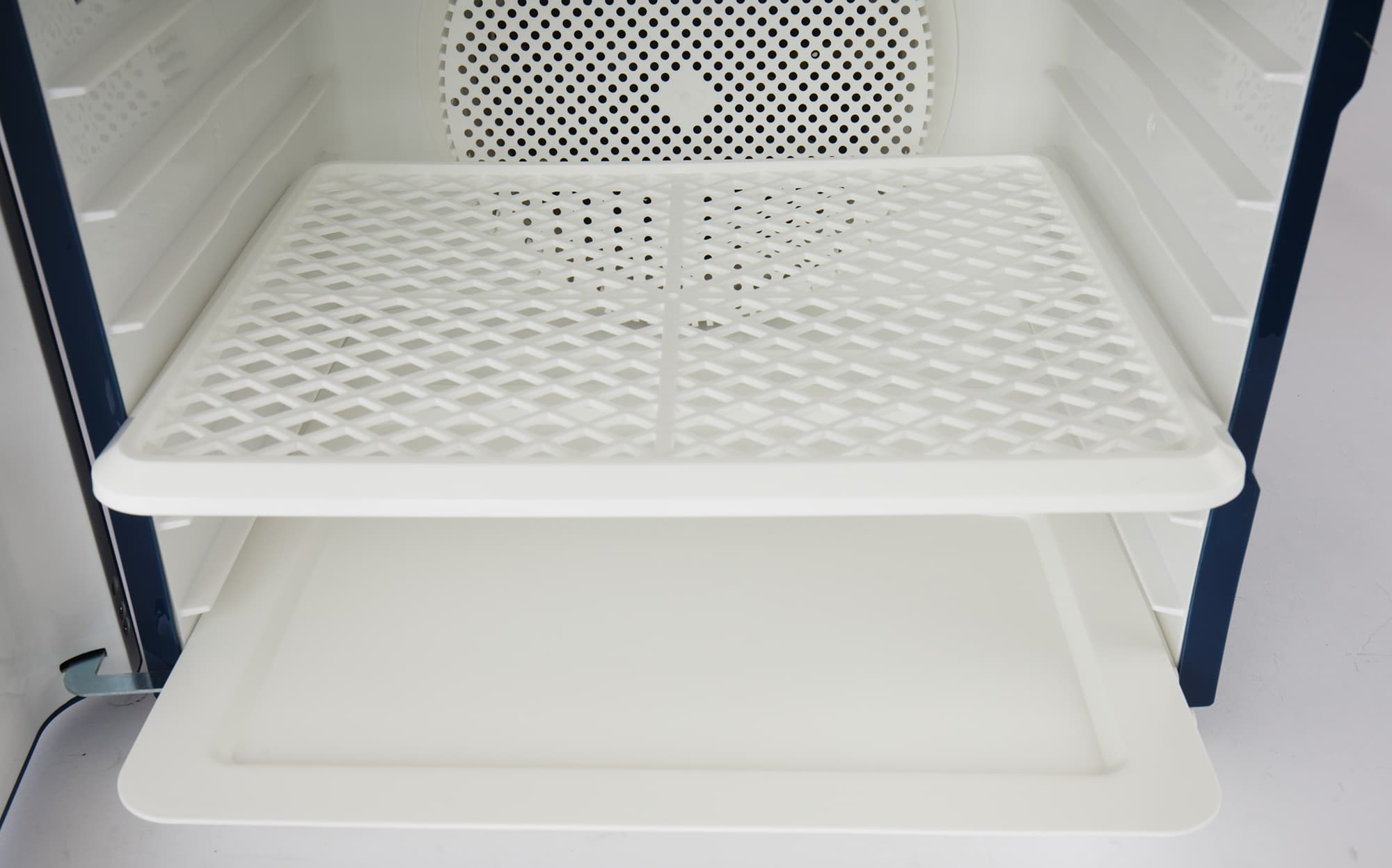 Пластиковые поддоны прямоугольной формы устанавливаются на пластиковые направляющие. Самый нижний (нерабочий) поддон предназначен для сбора влаги и крошек. Весьма разумное решение — сполоснуть поддон гораздо проще, чем мыть внутренности прибора.