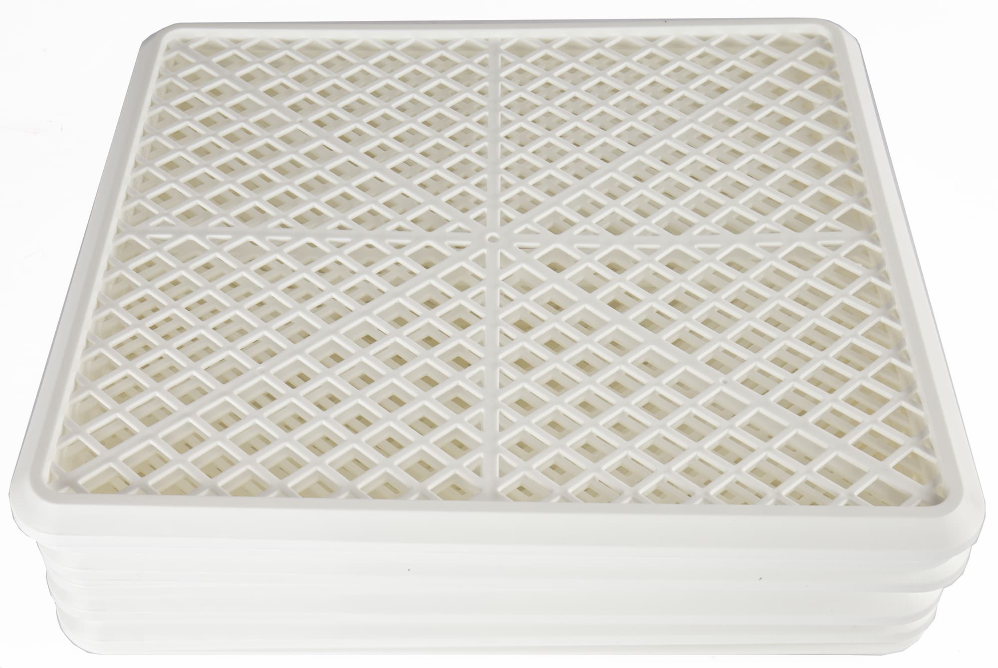 Белый матовый пластик, из которого сделаны поддоны нашей сушилки, выглядит более надежным: пластик тут мягкий, он не сломается даже при заметном изгибе поддона. И, надеемся, не рассохнется и не потрескается спустя месяцы или годы использования.