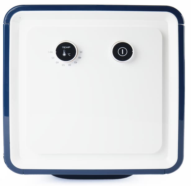 Верхняя часть дегидратора полностью белая. На ней выделяются органы управления — кнопка включения и ручка регулировки температуры.