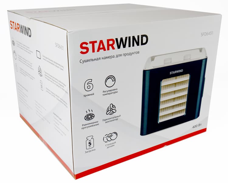 Сушильная камера (дегидратор) Starwind SFD6431 при первом знакомстве выглядит как довольно простое устройство. Даже внешний вид у него немного игрушечный — будто перед нами не настоящий кухонный прибор. Однако это полноценный дегидратор на шесть поддонов, причем не абы какой, а с горизонтальным обдувом (что, по идее, должно положительно сказаться на равномерности сушки продуктов). Цена также выглядит весьма привлекательно. Надеемся, что прибор окажется удобным и комфортным в ходе повседневной эксплуатации и не разочарует нас по итогам тестов.